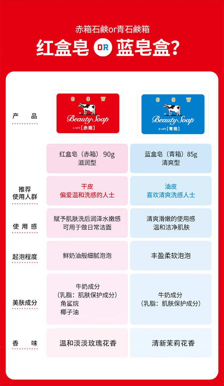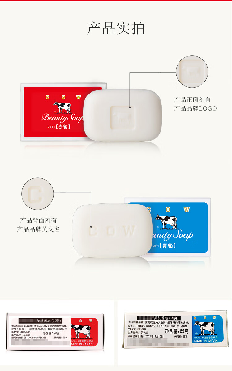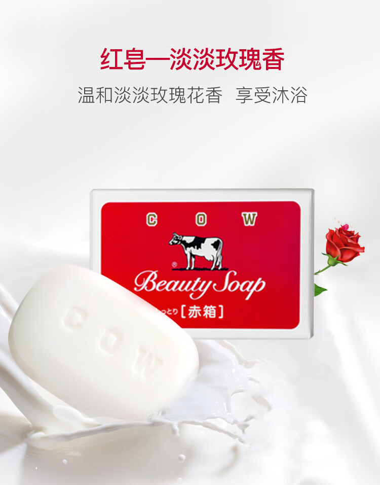 【3块装】COW牛牌牛乳石硷 美肤香皂(滋润) 90g 红色/(清爽) 85g 蓝色