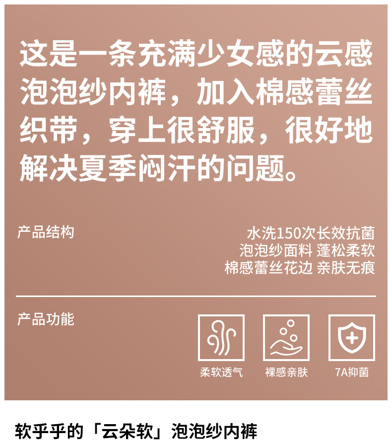 【3条装,穿上很舒服】MEI·ZHAI美宅玻尿酸云感裤 充满少女感的云感泡泡纱内裤 蓬松柔软很舒服 2519mg/kg高含量玻尿酸 养护肌肤 7A抑菌 高弹不紧勒 凉爽舒适