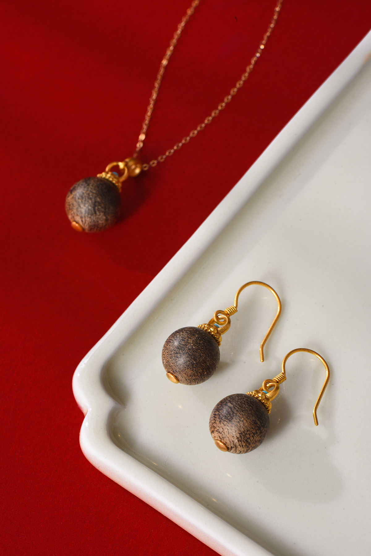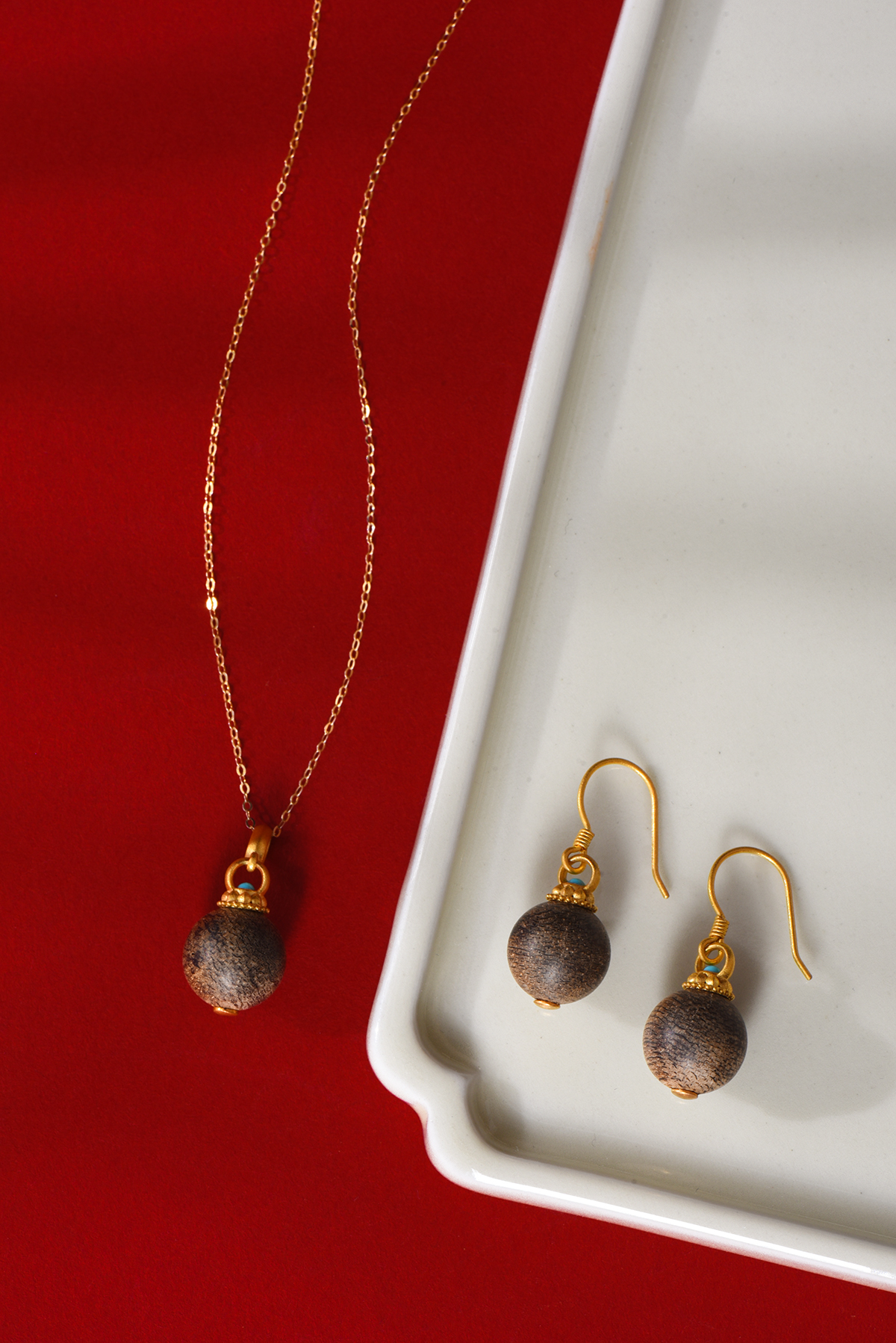 玲珑·满月丨天然文莱沉香包金饰品丨合集
