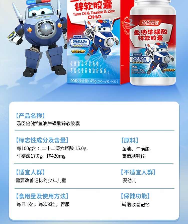 汤臣倍健 鱼油牛磺酸锌软胶囊(90粒)