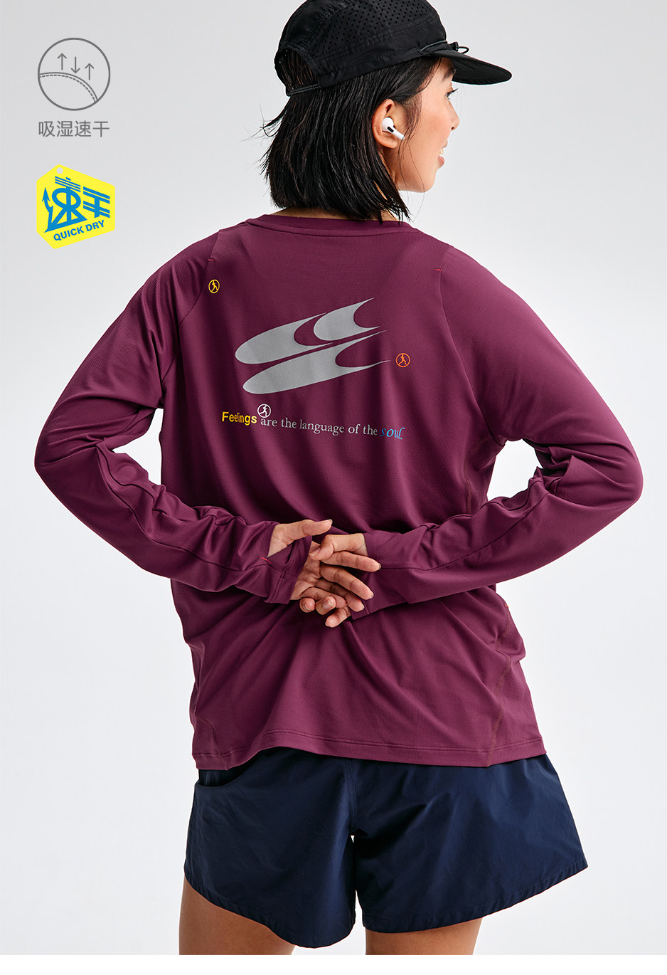 CryingCenter反光吸湿速干跑步运动户外综合训练服长袖上衣