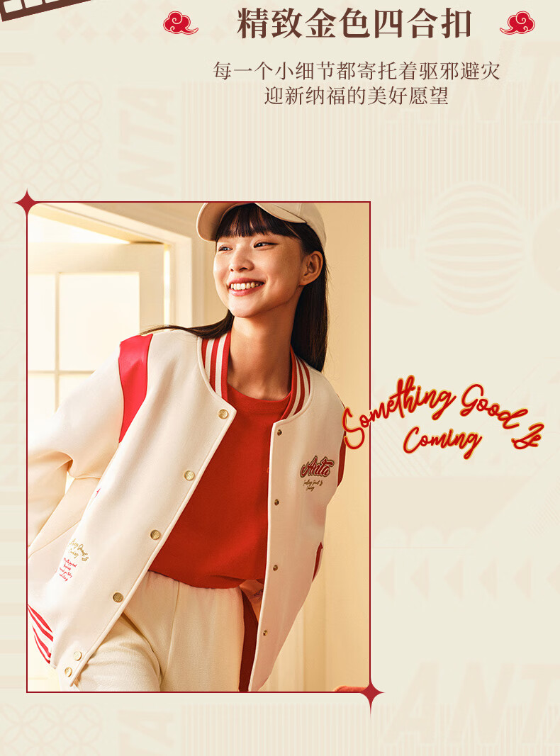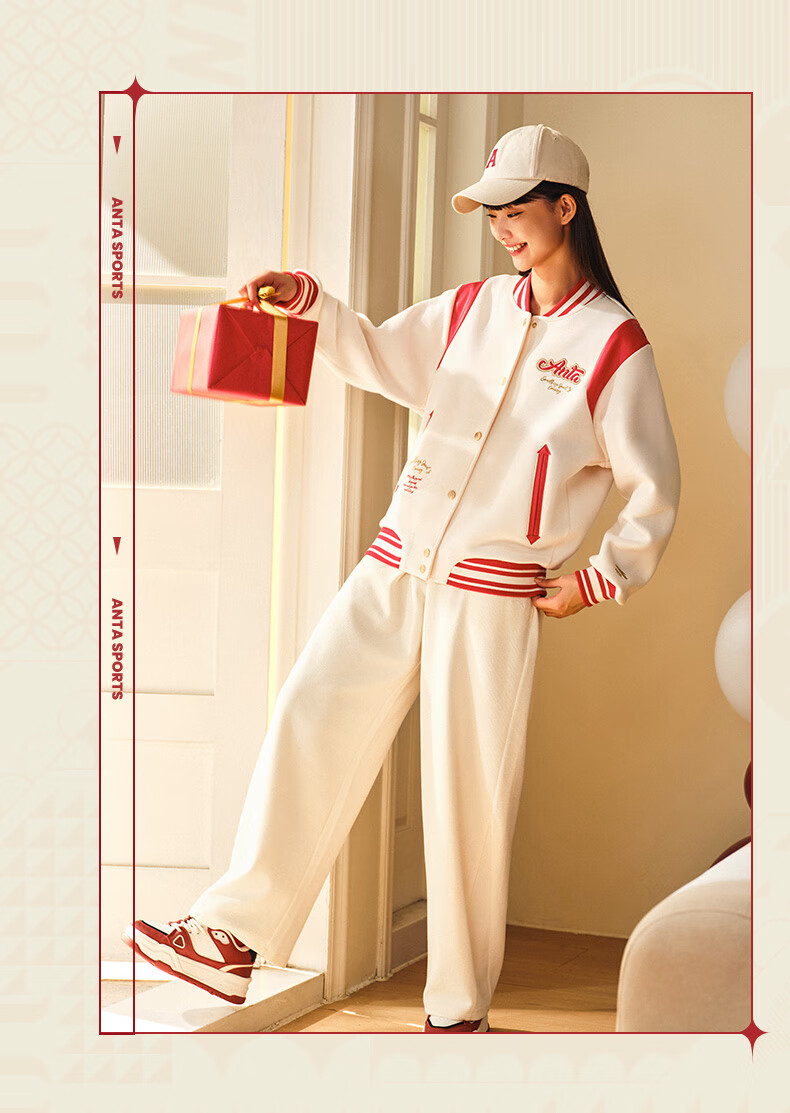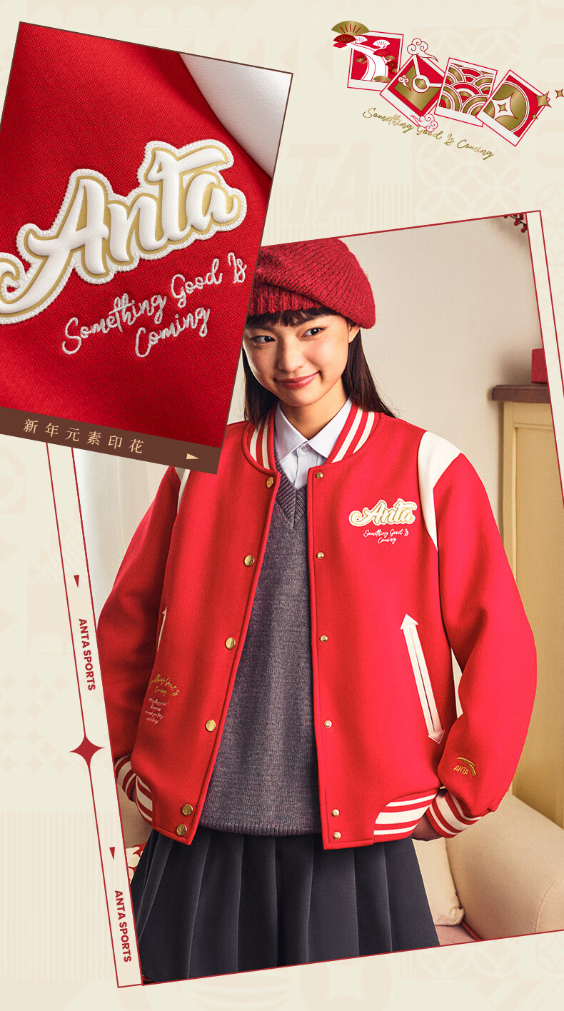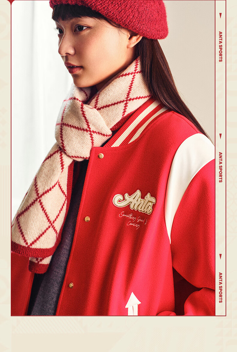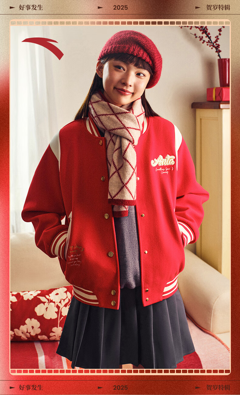 安踏好事发生丨关晓彤同款新年红色棒球服外套女士冬季夹克162518727S