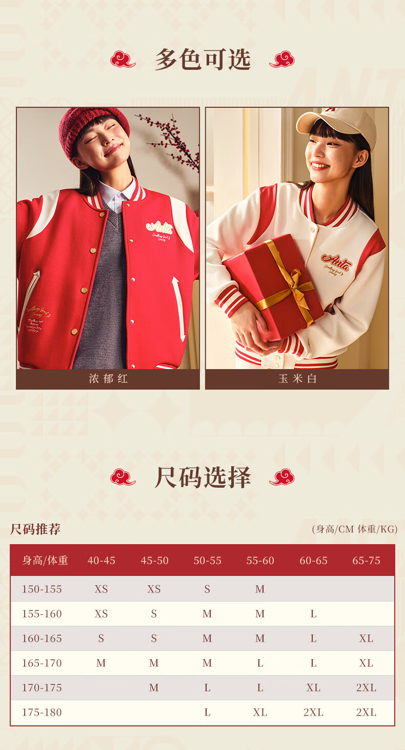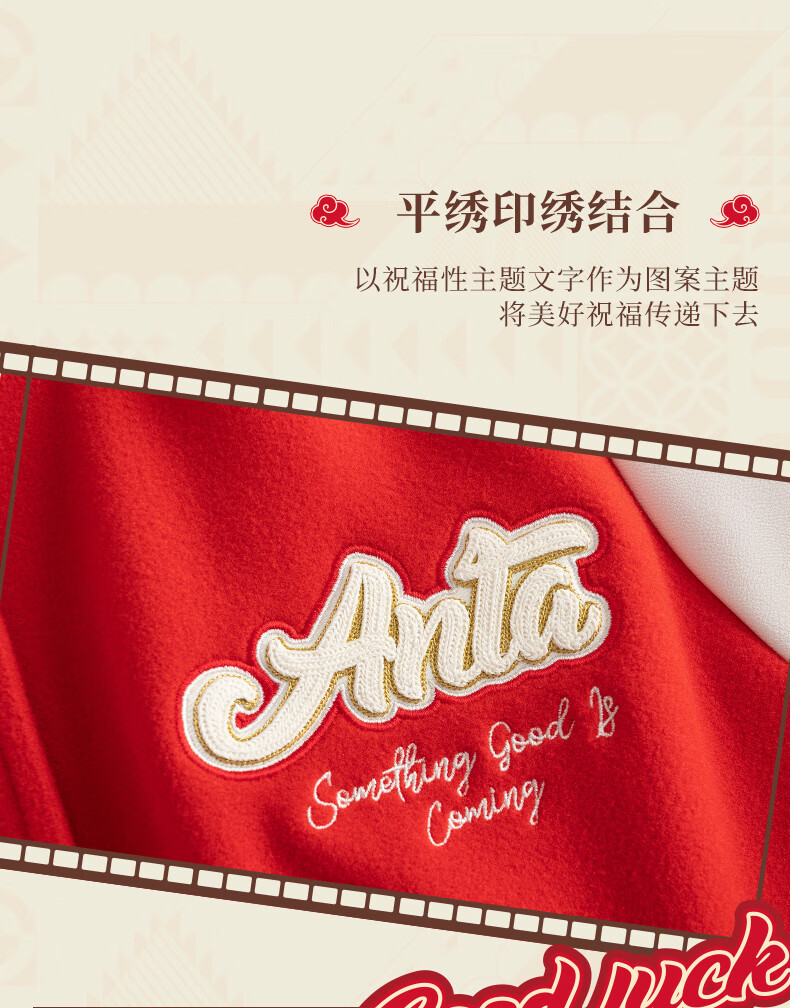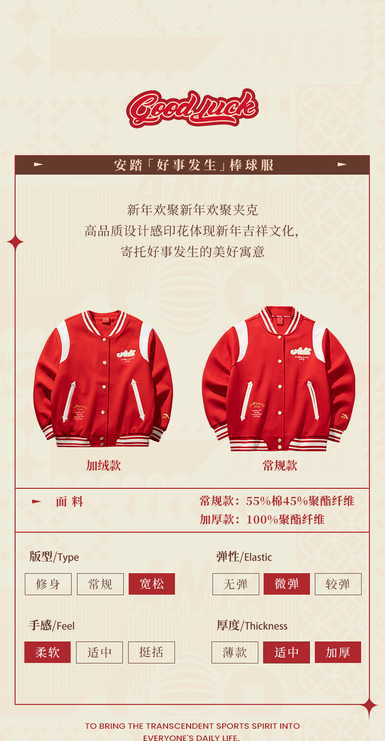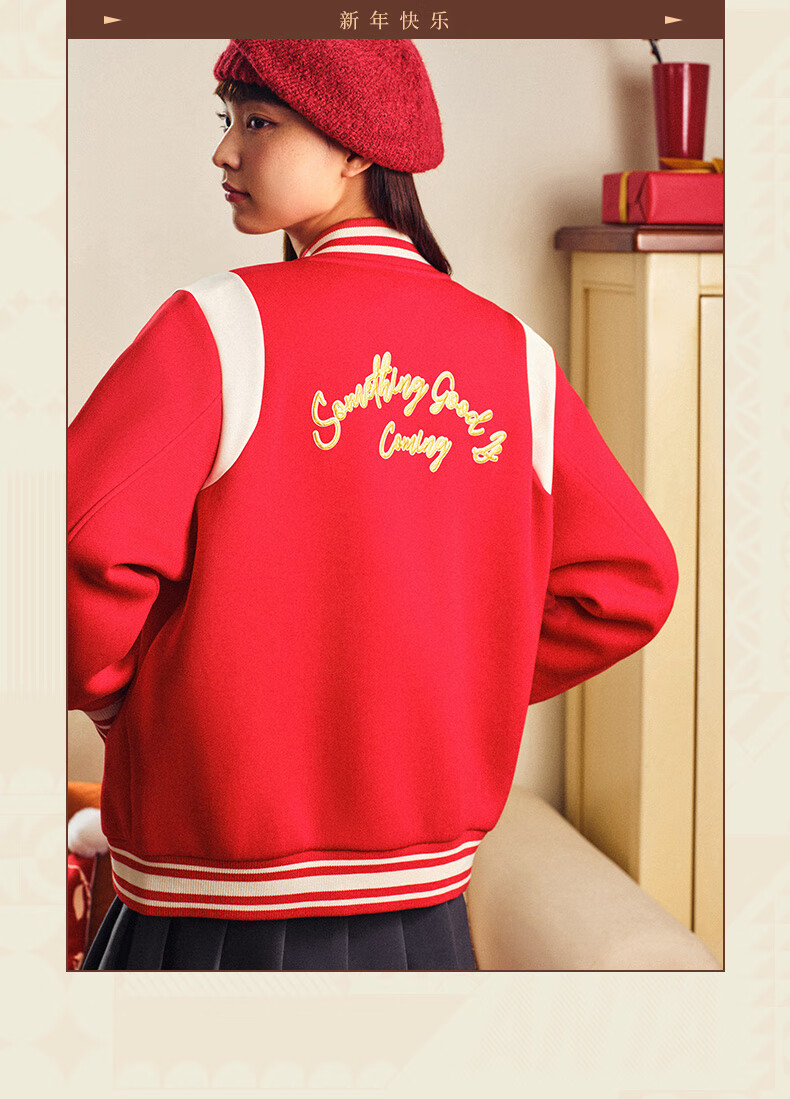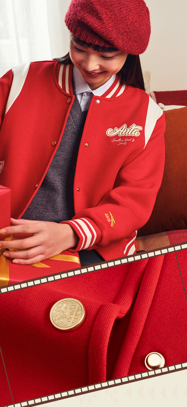 安踏好事发生丨关晓彤同款新年红色棒球服外套女士冬季夹克162518727S