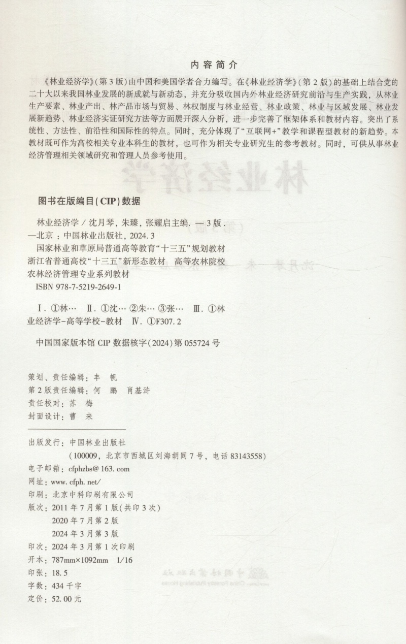 林业经济学(第3版高等农林院校农林经济管理专业系列教材) &2649