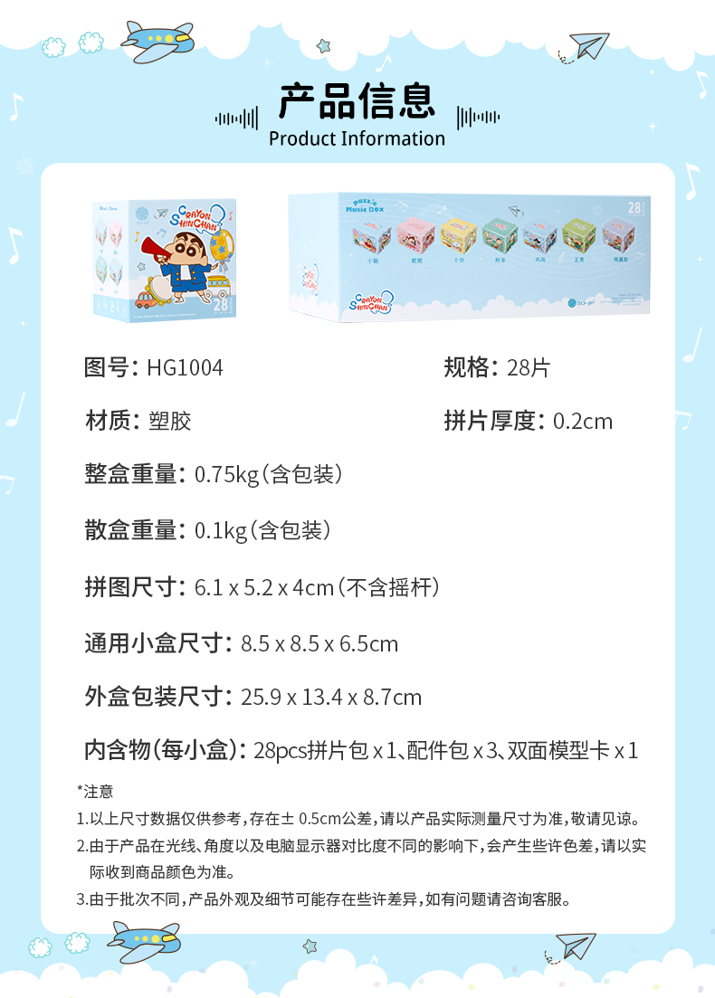 28片 音乐盒盲盒拼图 HG1004 蜡笔小新-向日葵音乐课系列