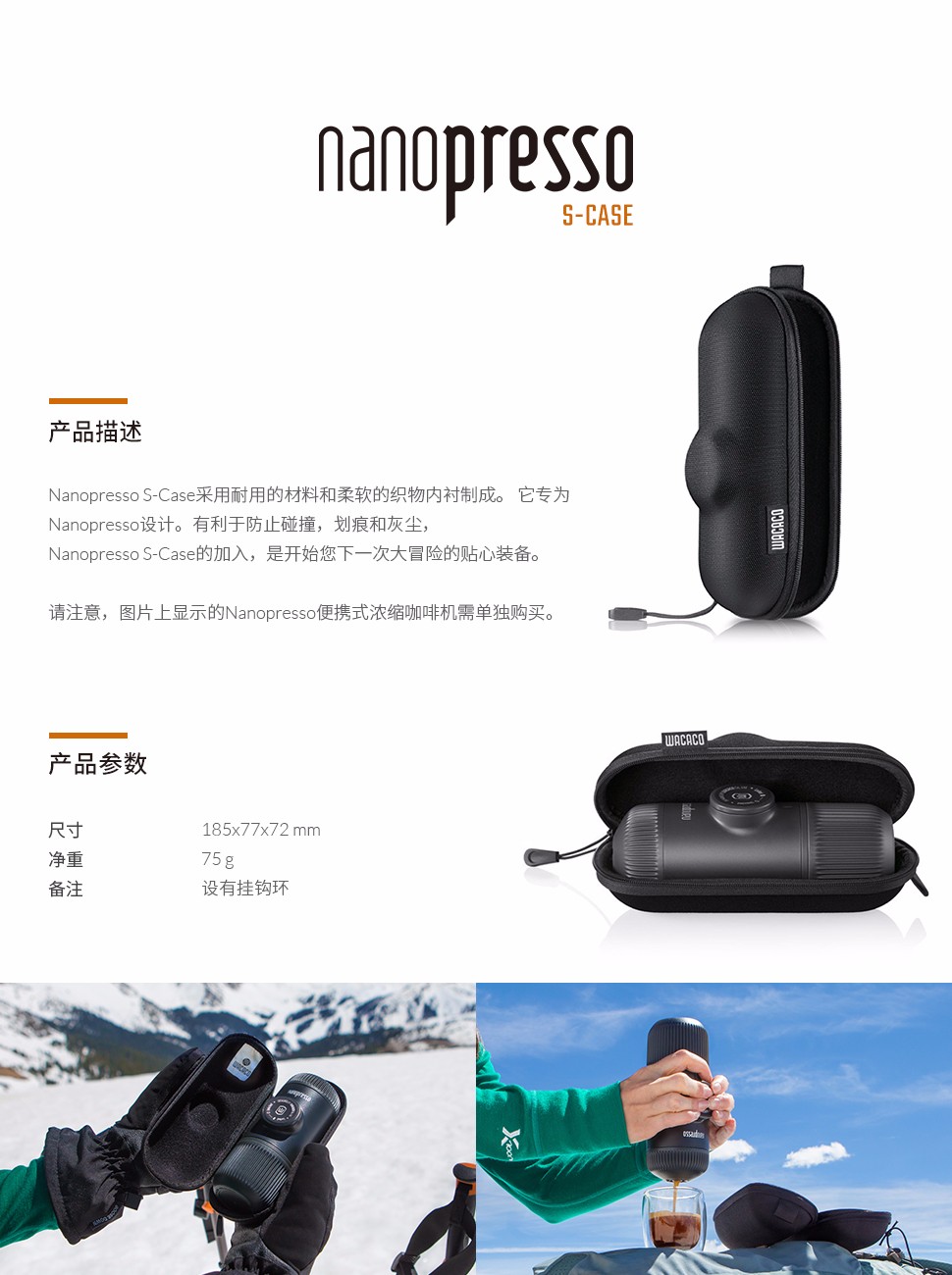WACACO Nanopresso Case便携意式咖啡机保护套适用于Nanopresso系列 S号