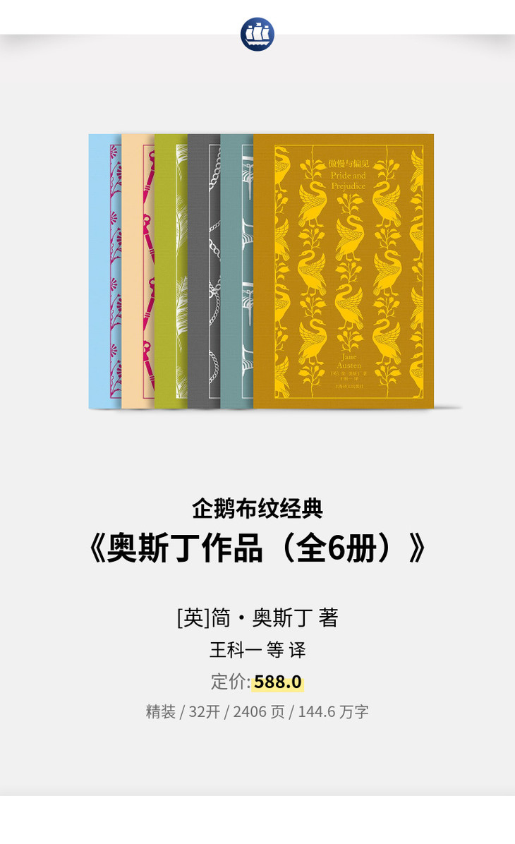 本书系由企鹅图书授权,上海译文出版社联合出品,是一套高度还原享誉国际书界的“企鹅布纹经典”形神之美的经典外国文学名著。书壳按企鹅原版相同装帧工艺标准制作,原料定制,原件制版,大面积高难度烫印工艺,具有极强的辨识度,凸显古雅经典又不失现代的高级质感。译文采用包括王科一等在内的、在几代中国读者心目中有口皆碑的卓越名家译本。首辑15种,含奥斯丁作品6种,另有狄更斯及勃朗特姐妹作品陆续出版。