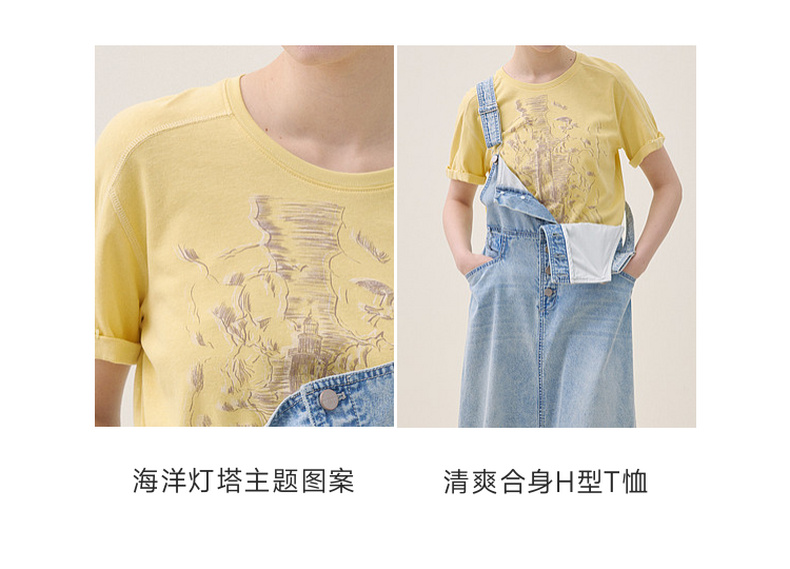 谜底印花T恤短袖2026夏新品线条图案H型清爽百搭活力女262MT0495