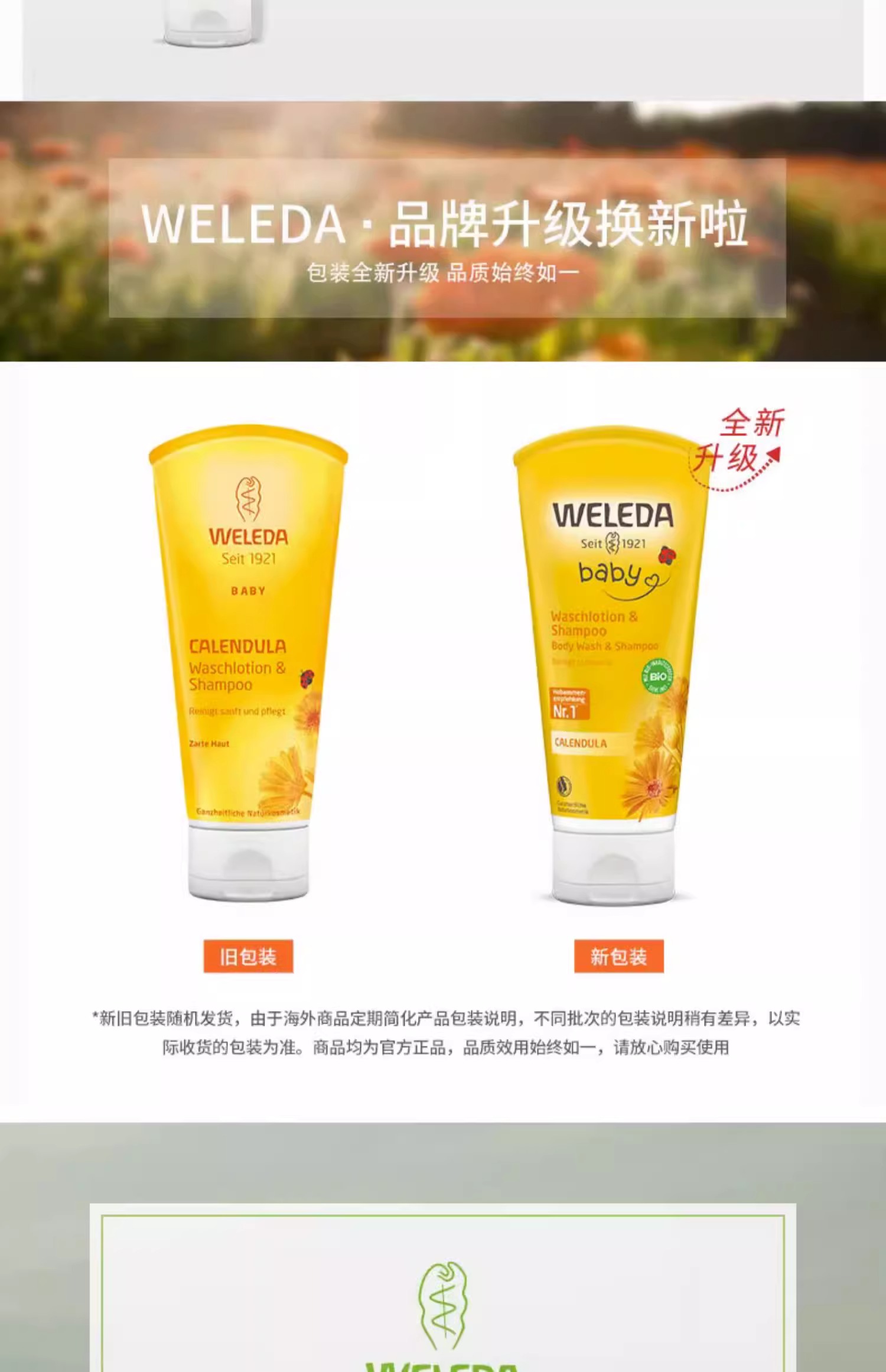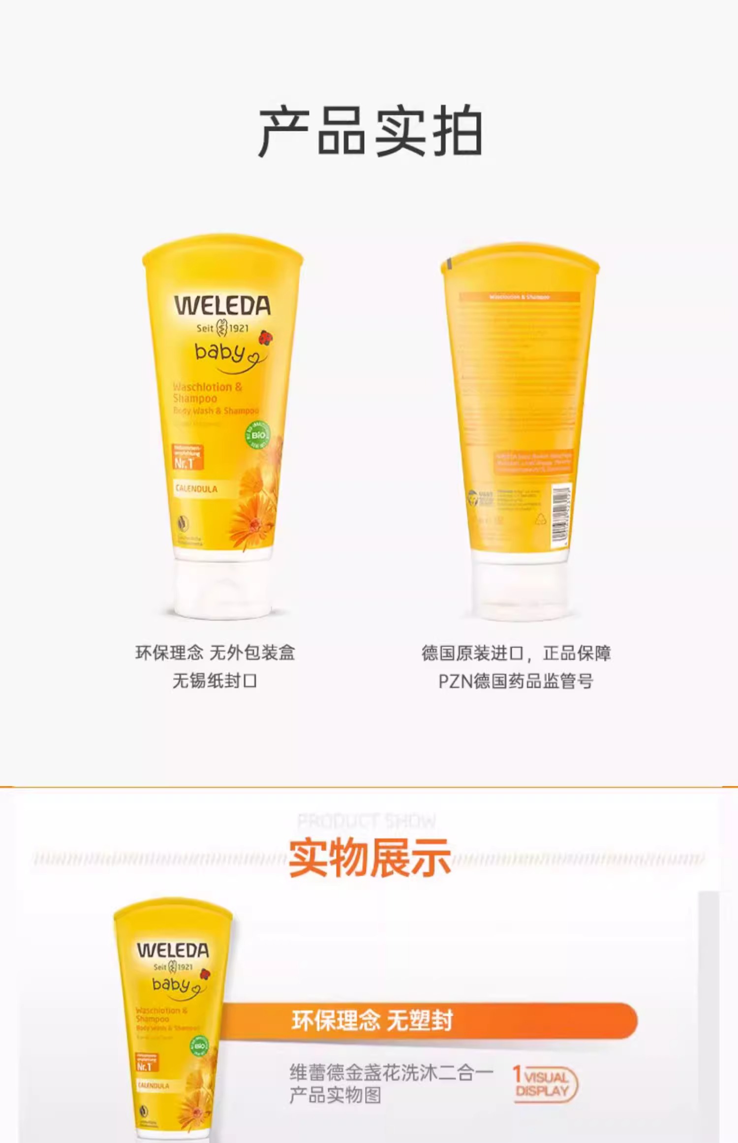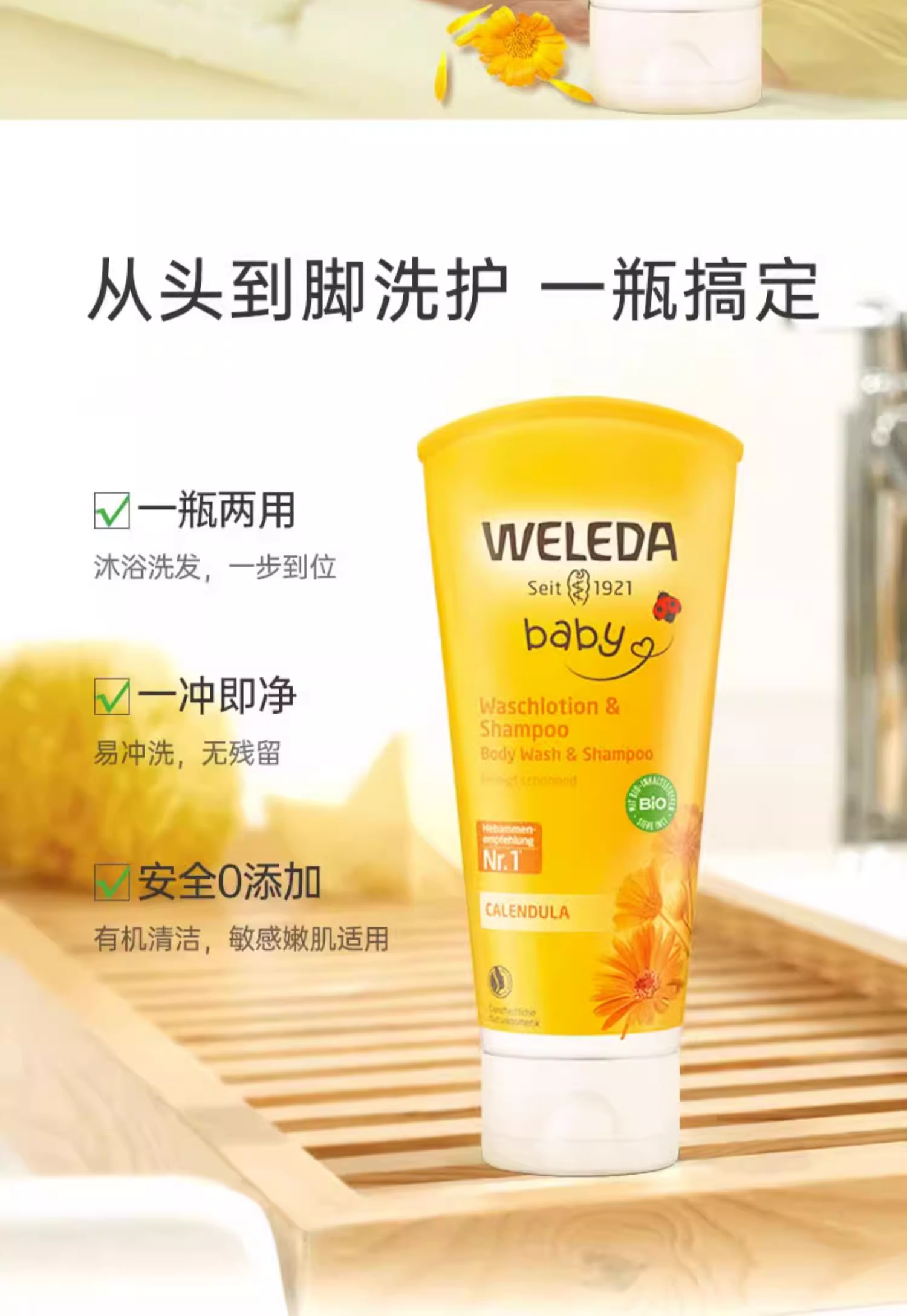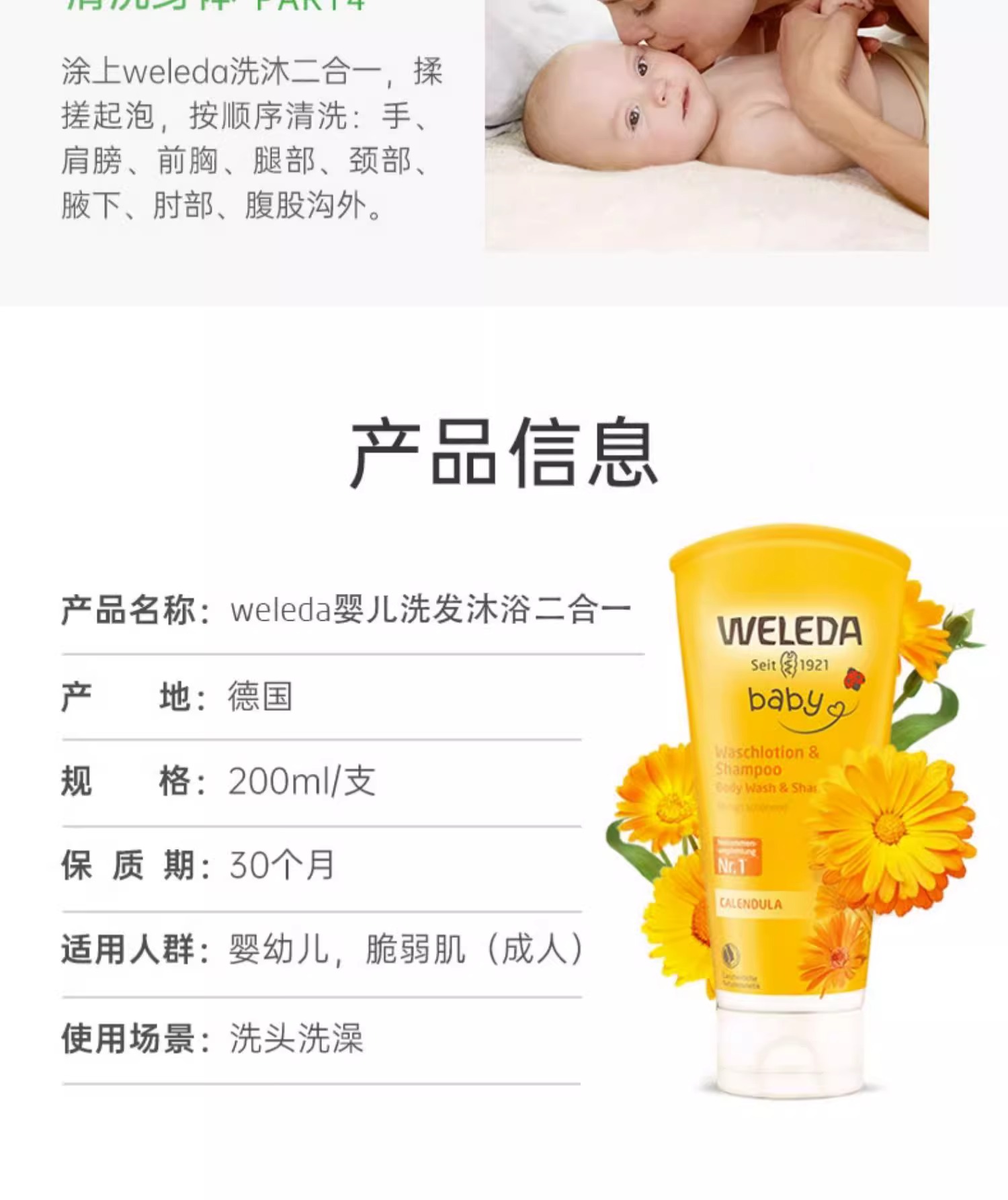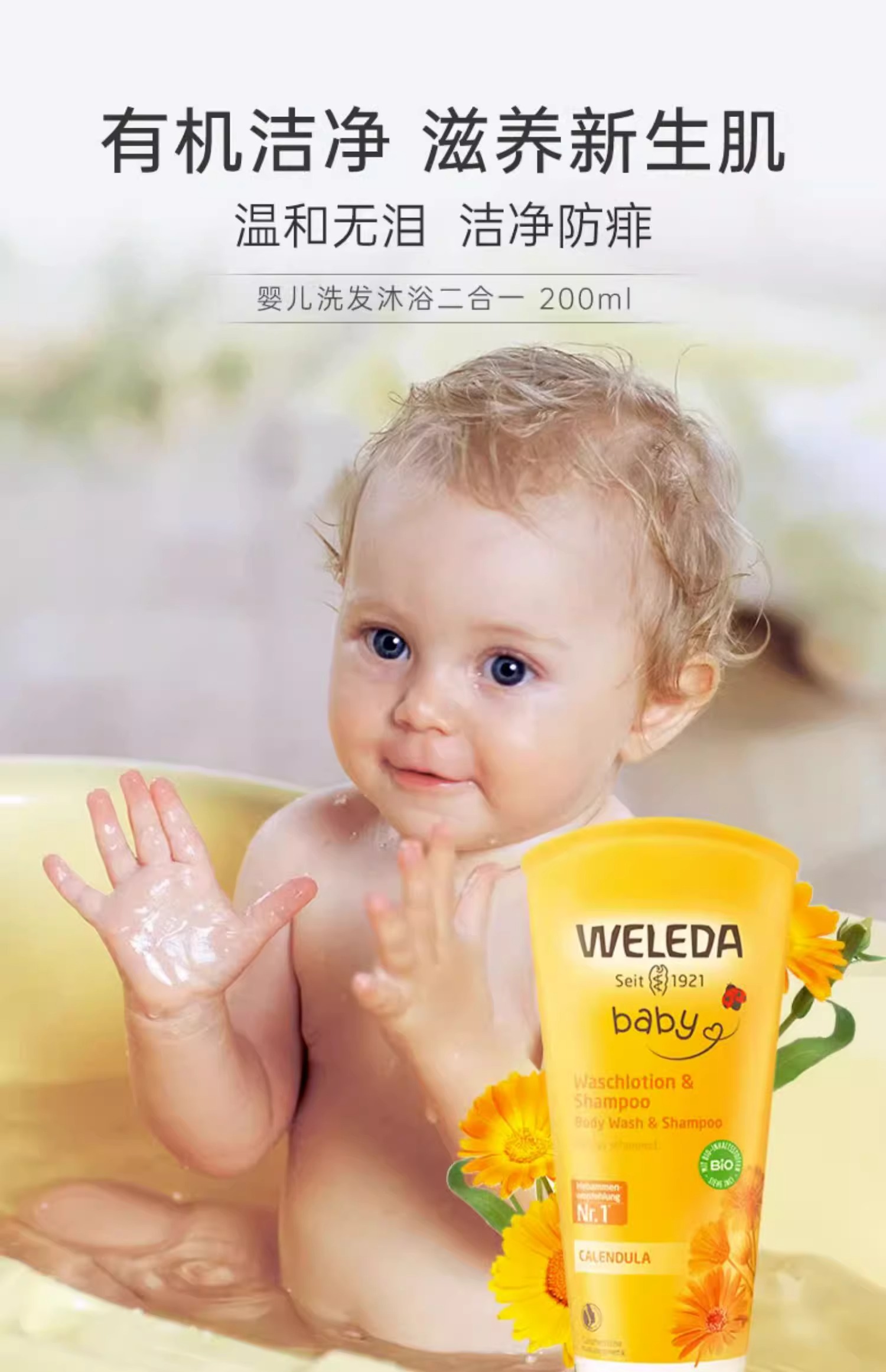 【保税仓】德国WELEDA金盏花婴儿洗发沐浴2合1乳液200毫升