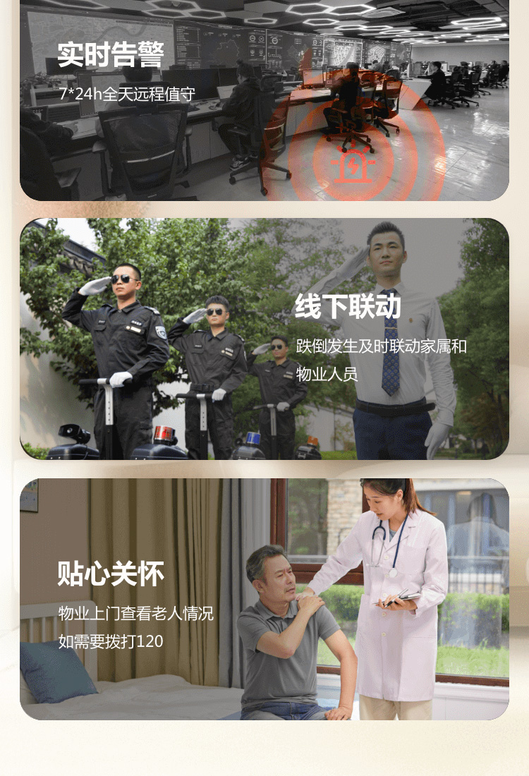 我们为客户提供家庭、商住场景的24小时在线防盗、防火、防毒以及无人化管理服务。实现老旧电子、消防设备“e”键入云,99%时间无故障使用,并升级智能化能力。