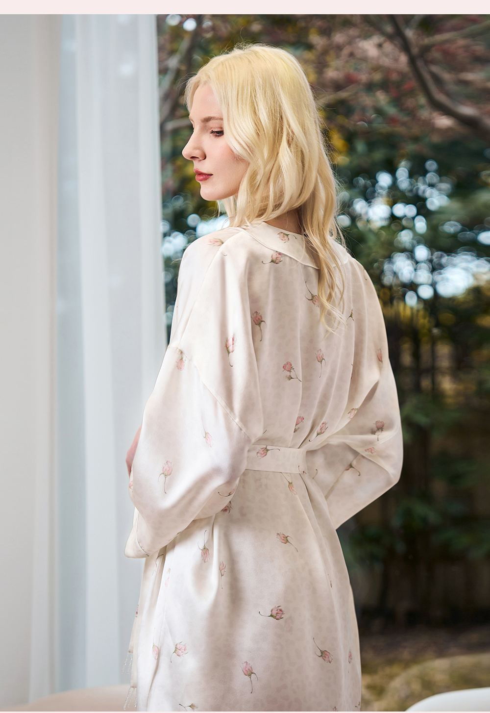 Solo seta22姆米女士真丝印花睡袍桑蚕丝家居服情人节送礼春夏