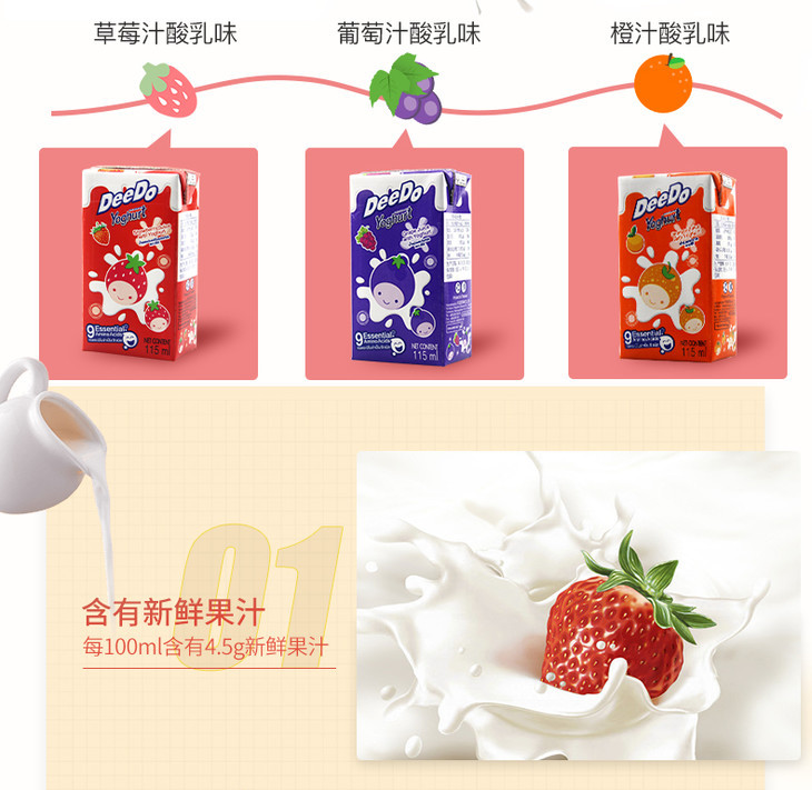 115ml*6嘀嘟 草莓汁/橙汁/葡萄汁 酸乳味饮料