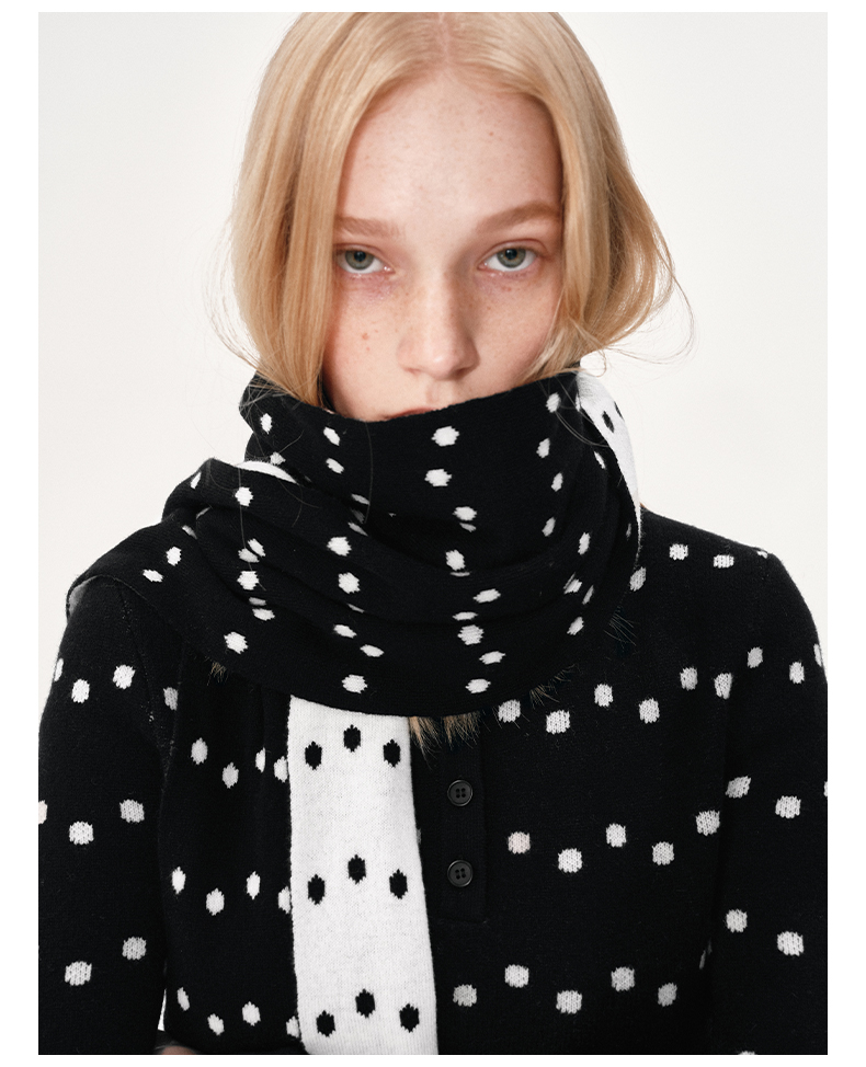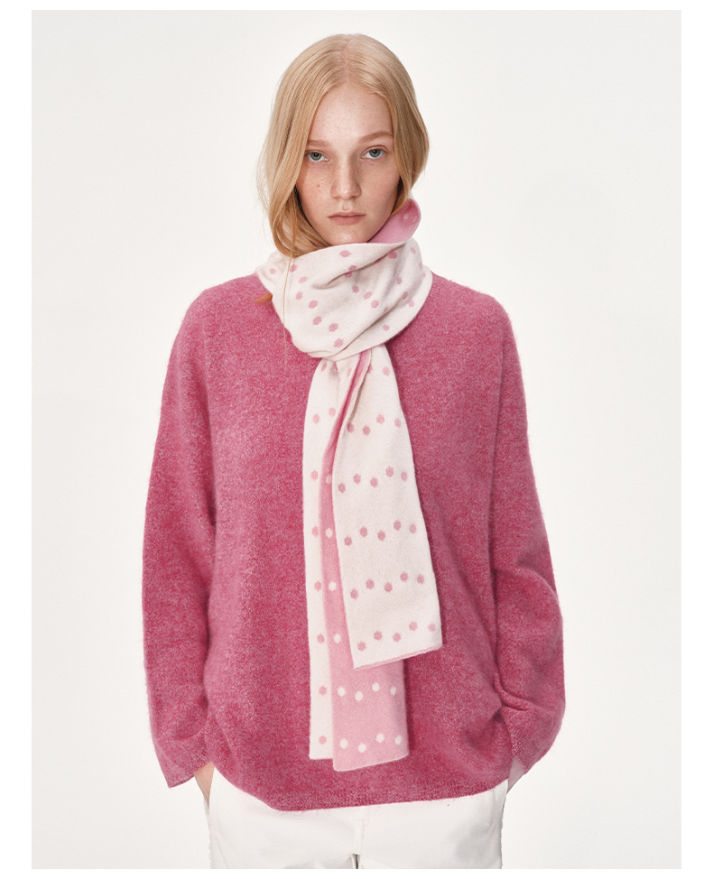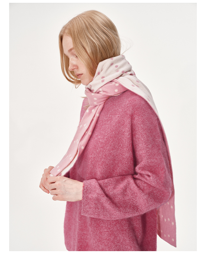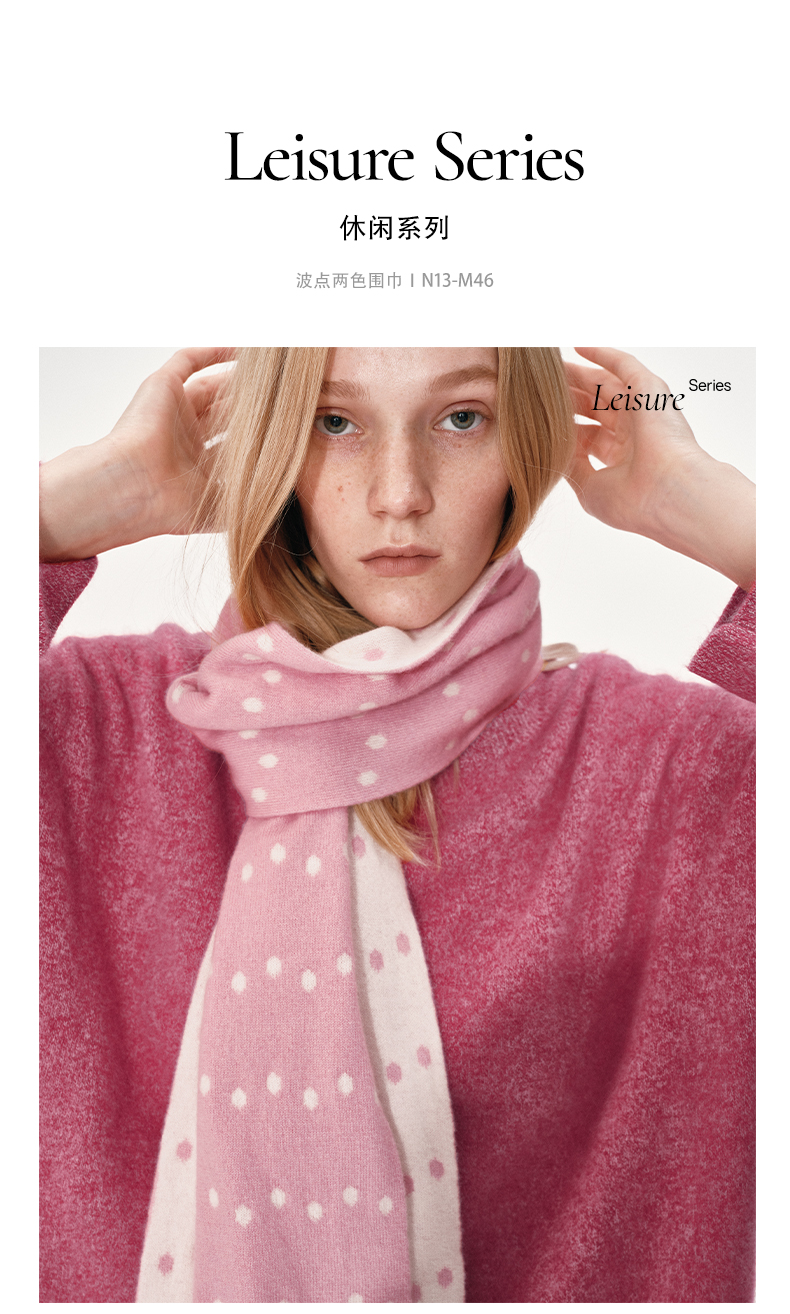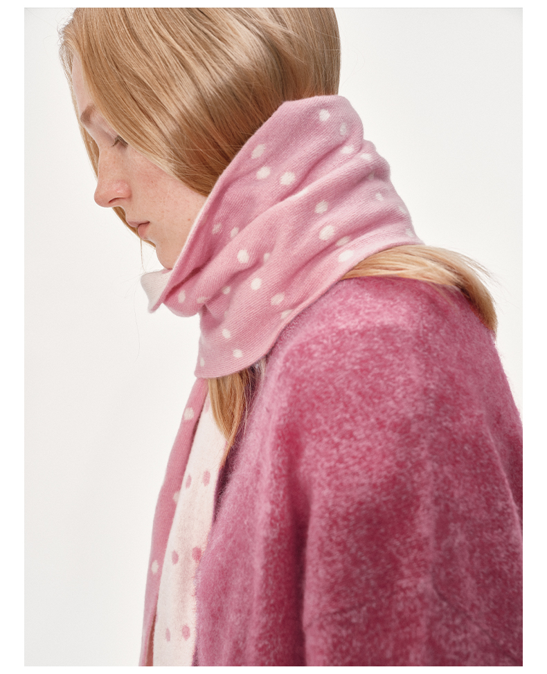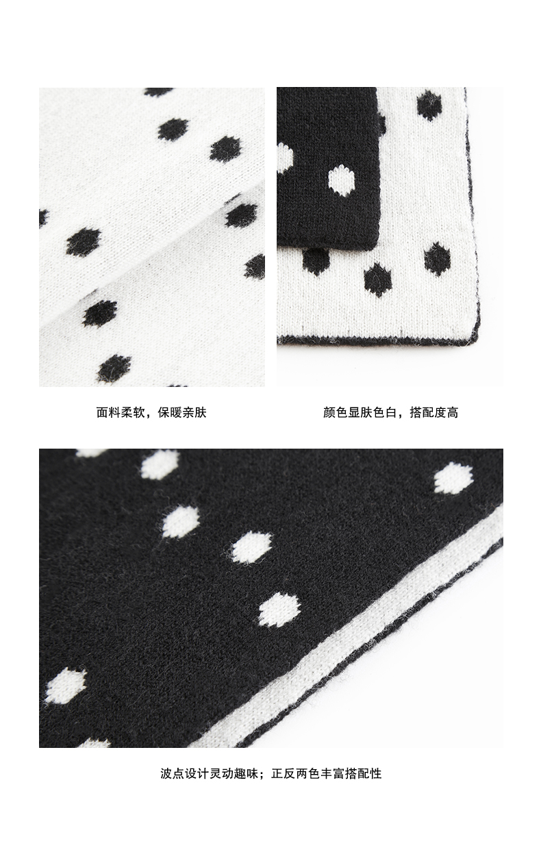 NUTH 美利奴羊毛正反两色波点保暖围巾女 黑色/粉色(发货时间同步天猫)