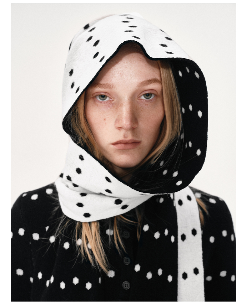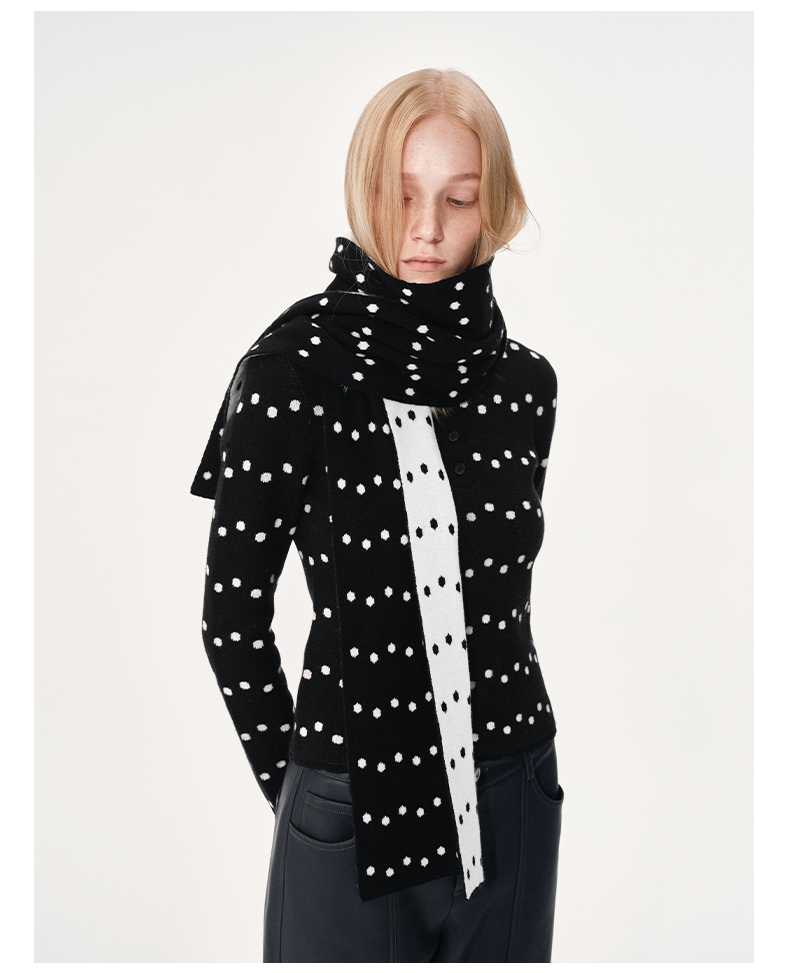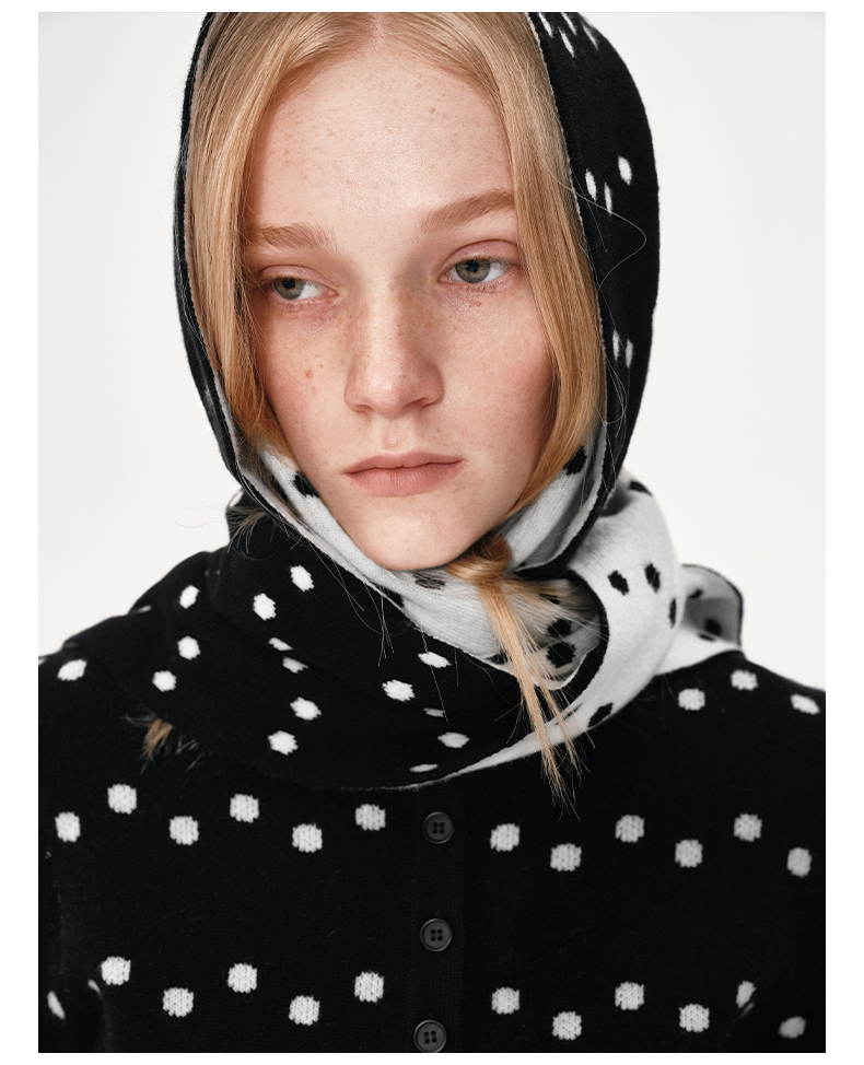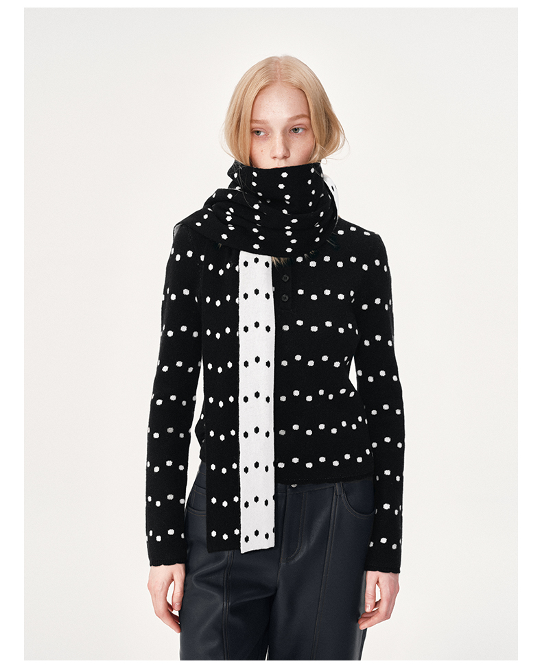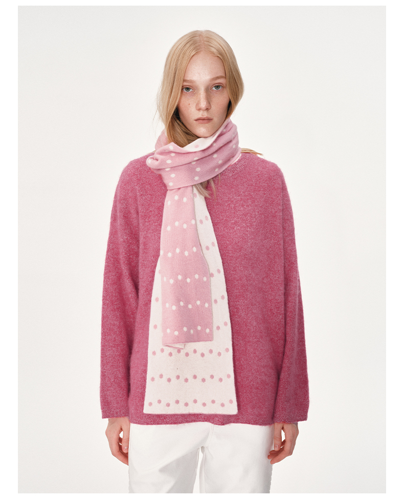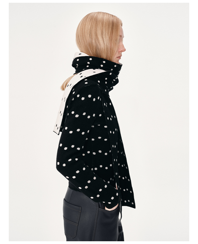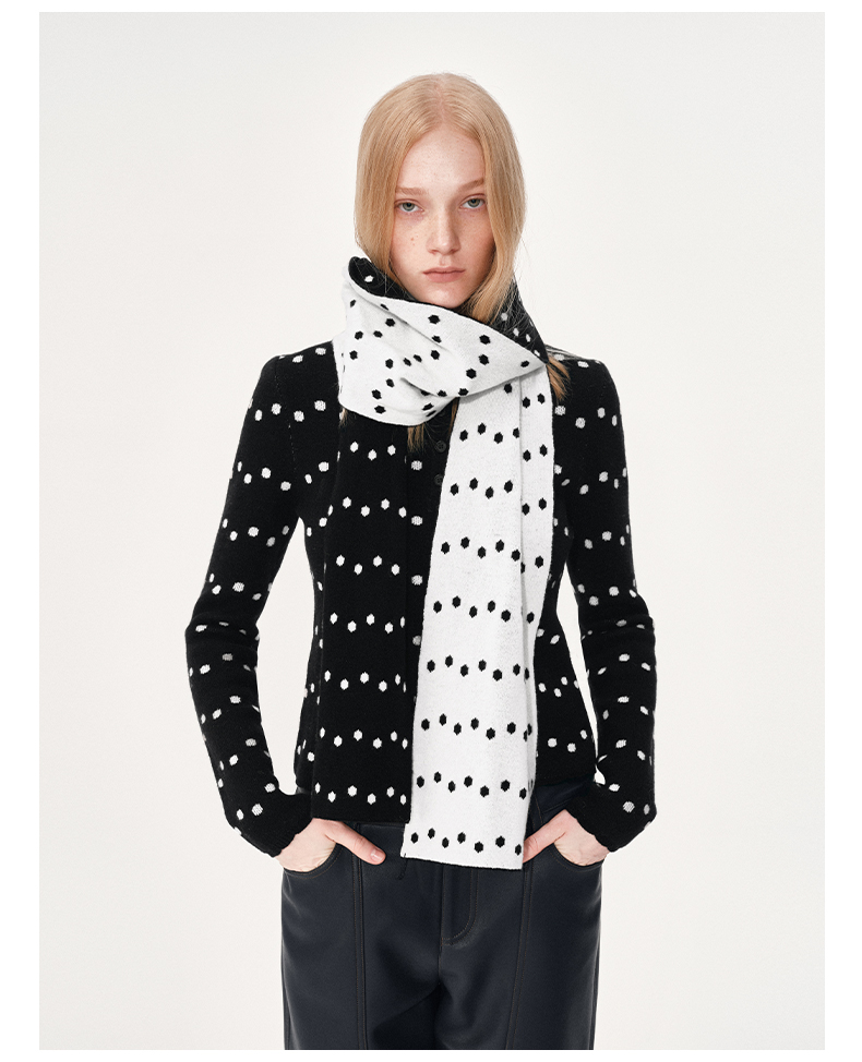 NUTH 美利奴羊毛正反两色波点保暖围巾女 黑色/粉色(发货时间同步天猫)