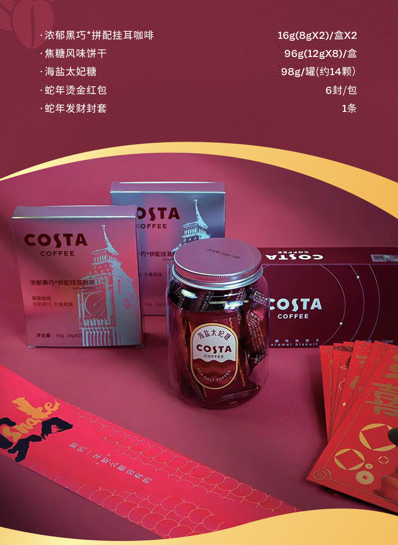 COSTA咖世家挂耳咖啡焦糖饼干礼盒套装太妃糖精品礼盒226g