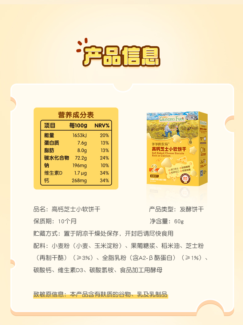爷爷的农场高钙芝士小软饼干60g