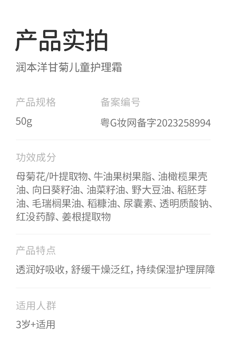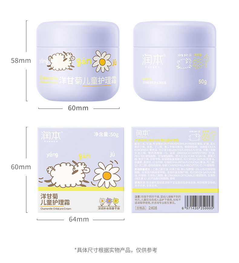 润本洋甘菊儿童护理霜 秋冬保湿滋润秋冬防皴擦脸宝宝护肤面霜