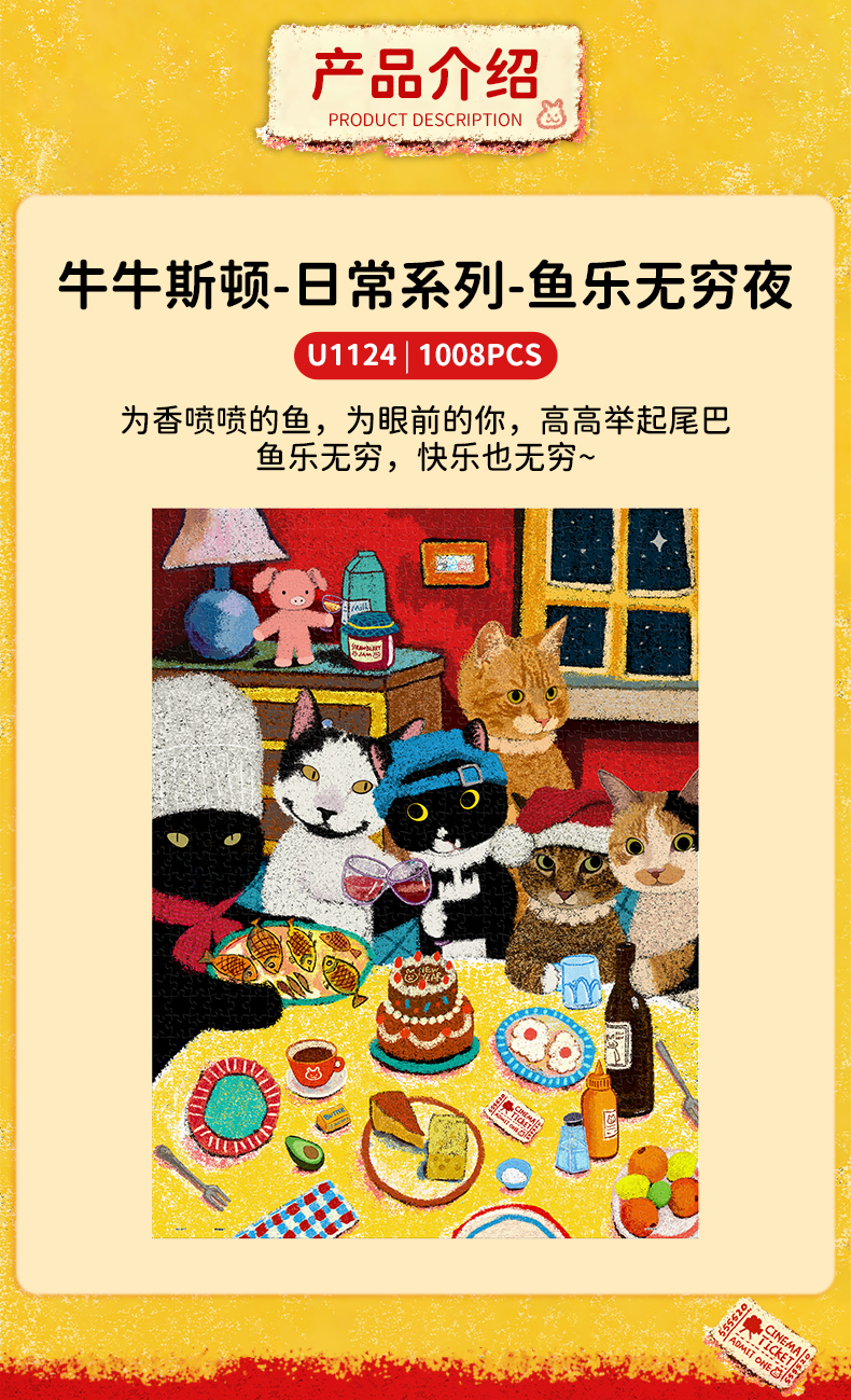 1008片 平面塑料拼图 U1124 牛牛斯顿-日常系列-鱼乐无穷夜【Showpiece L】