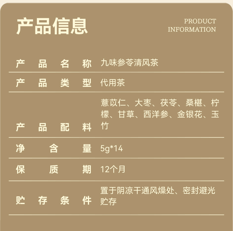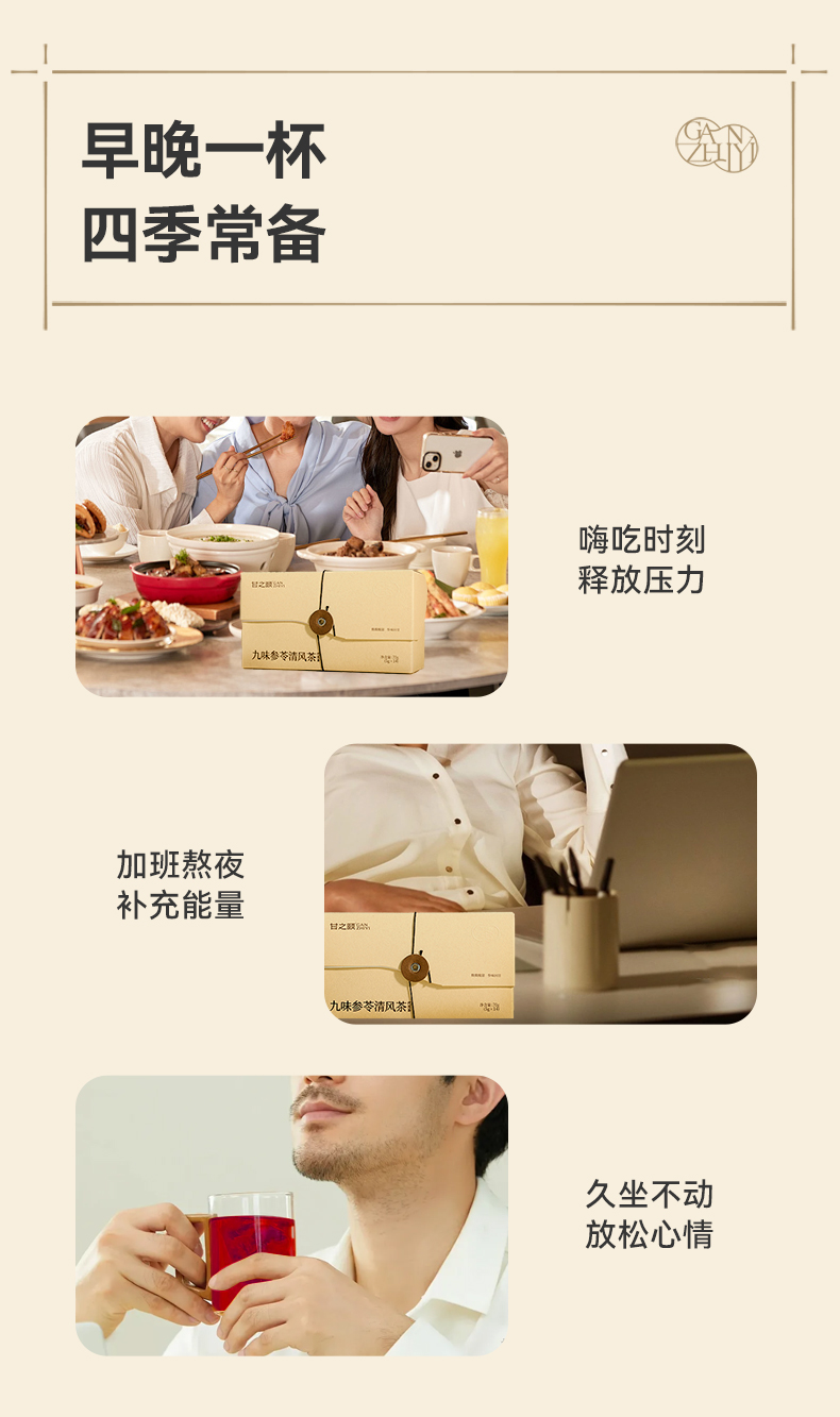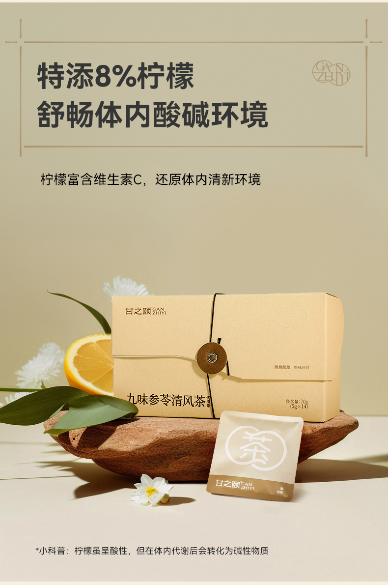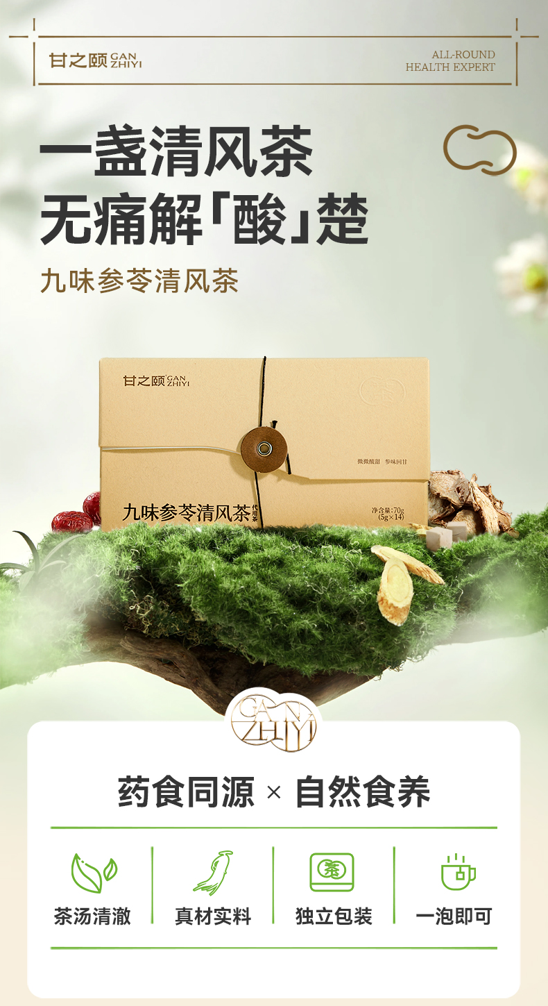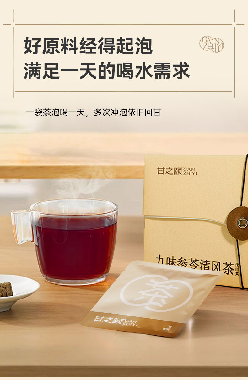 【限时秒杀59.9/3盒,89/5盒】甘之颐 九味参苓清风茶 5g*14包/盒 金银花甘草西洋参茶九大草本茶泡水饮品