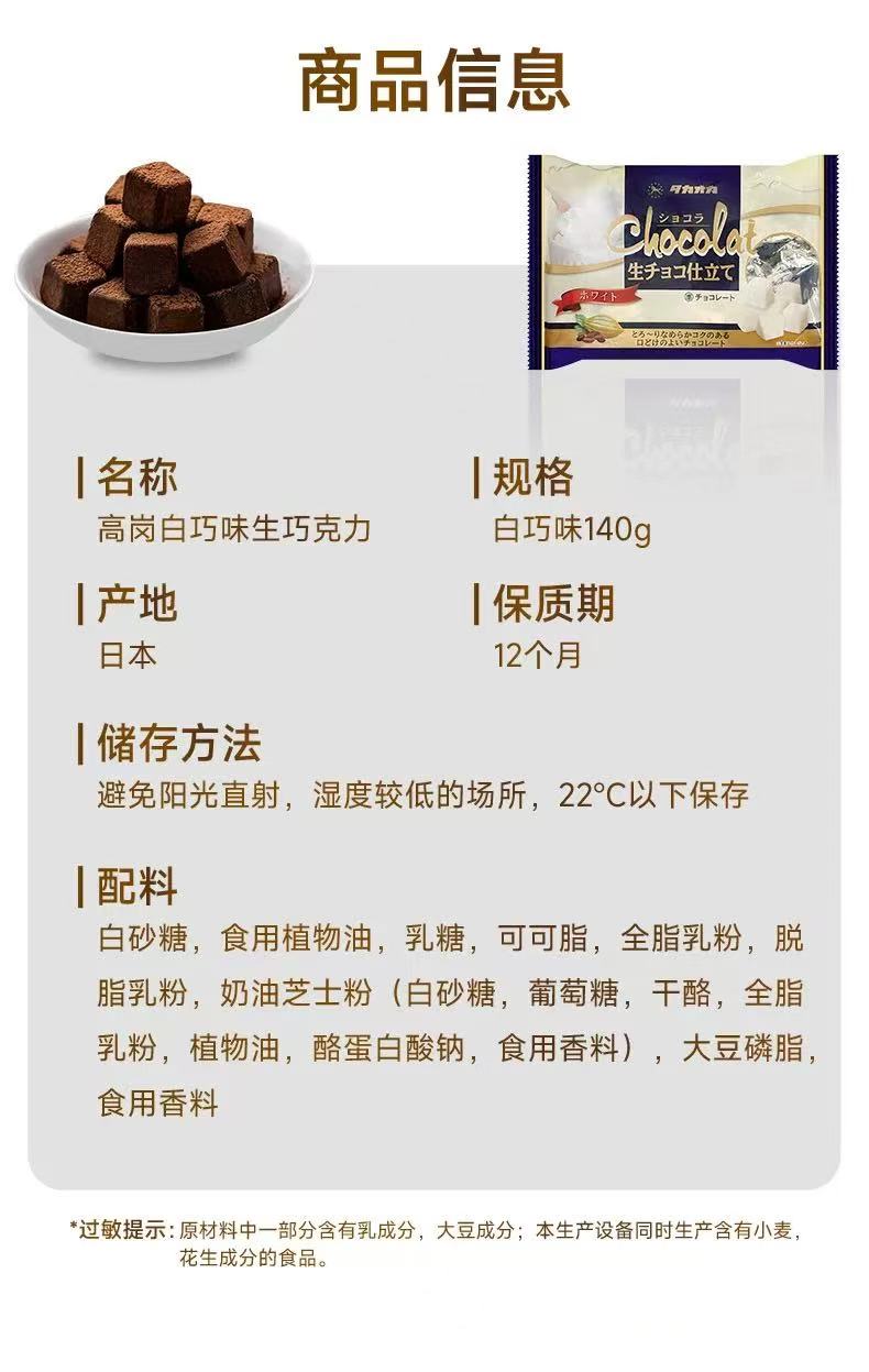 高岗 代可可脂白巧克力 140g/袋