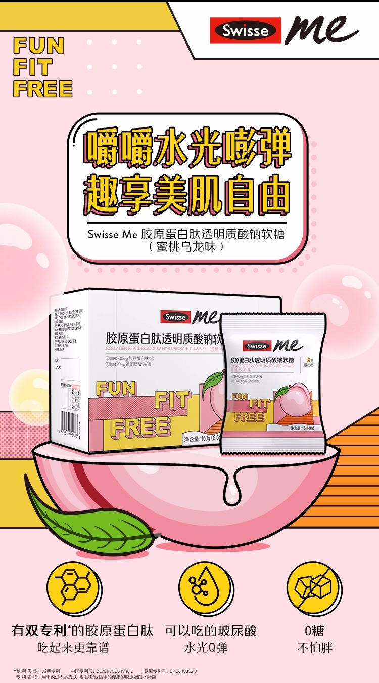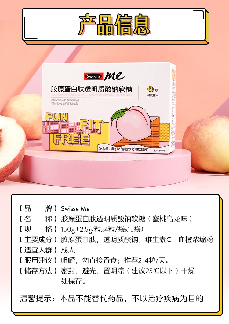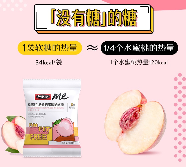 Swisse斯维诗Me胶原蛋白肽透明质酸钠蜜桃乌龙味软糖60粒/盒