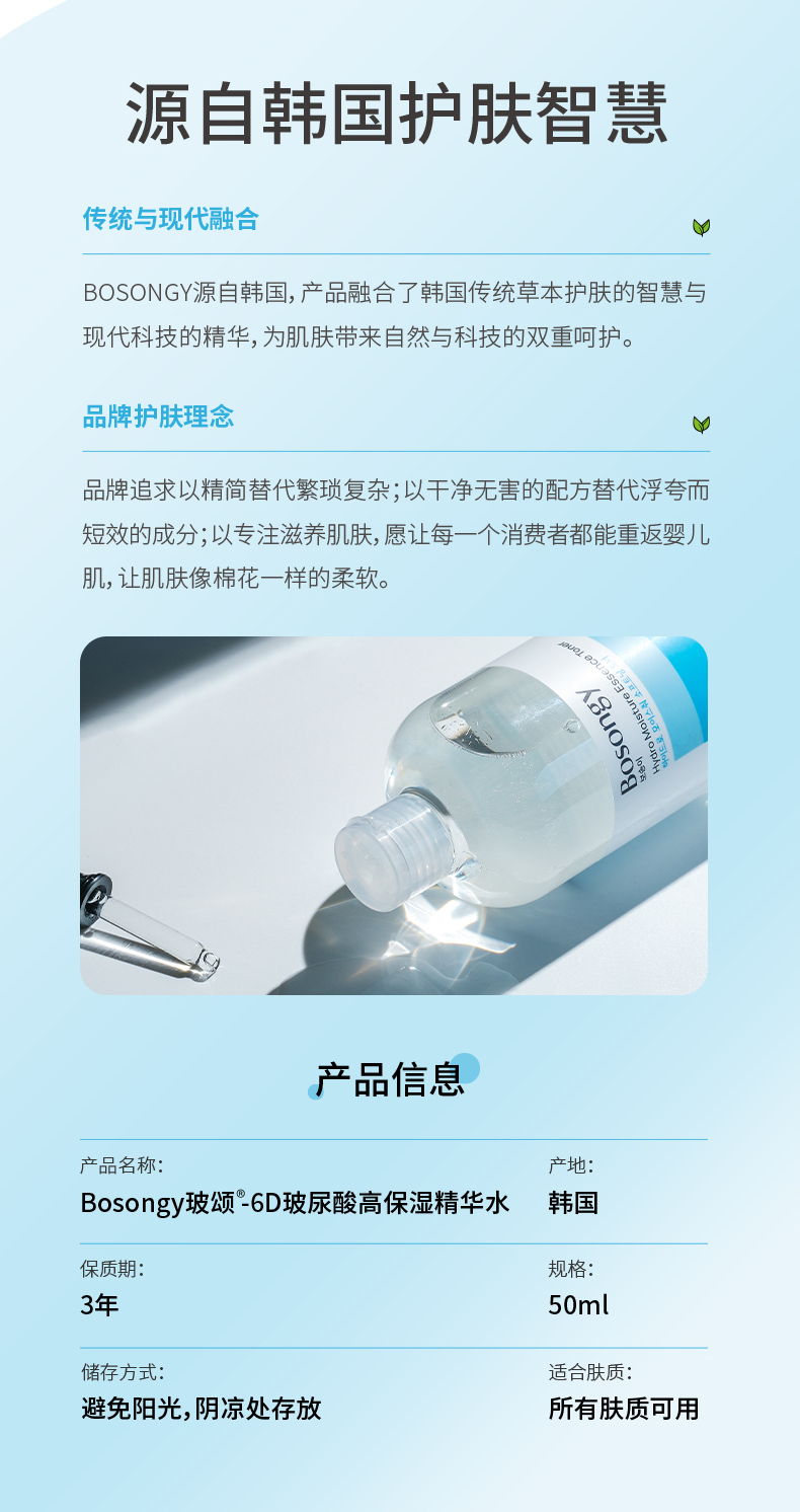 【小样】BOSONGY 玻颂 高保湿精华水 50ml 中样 旅行装