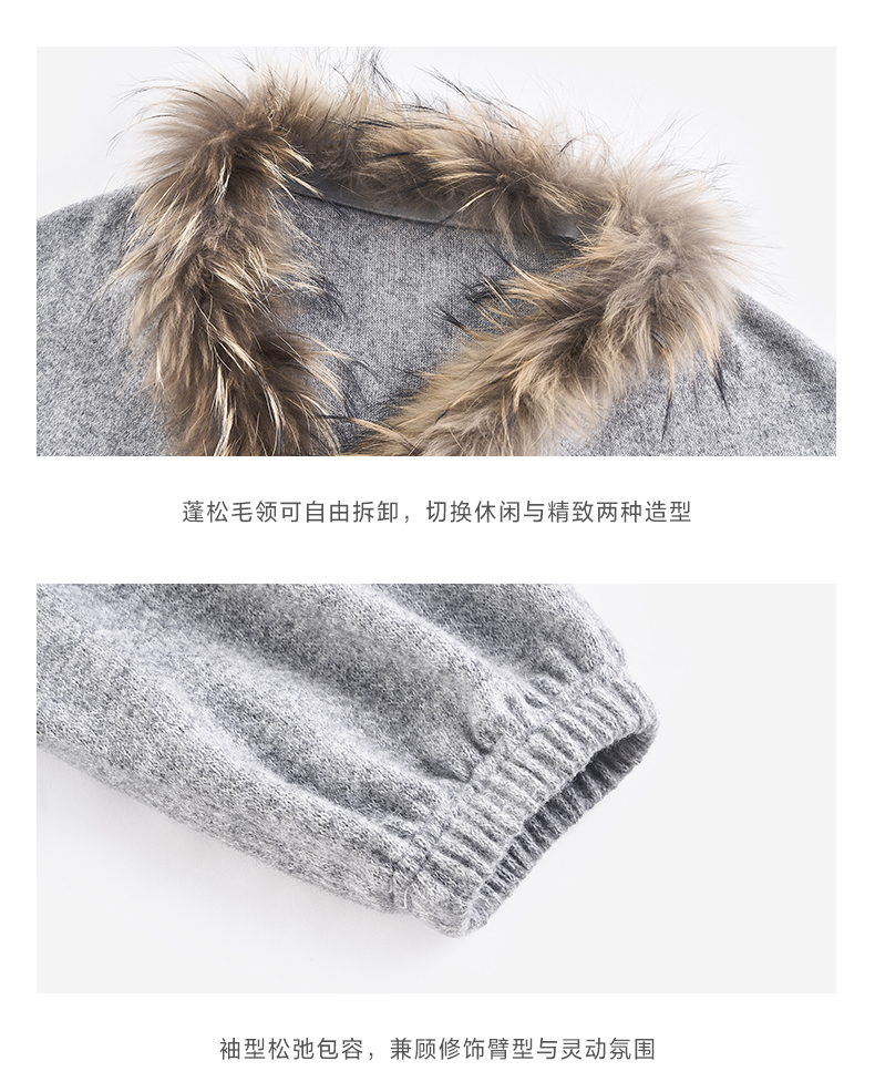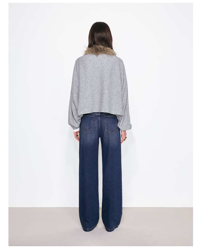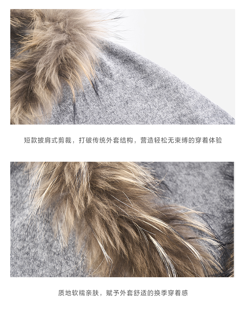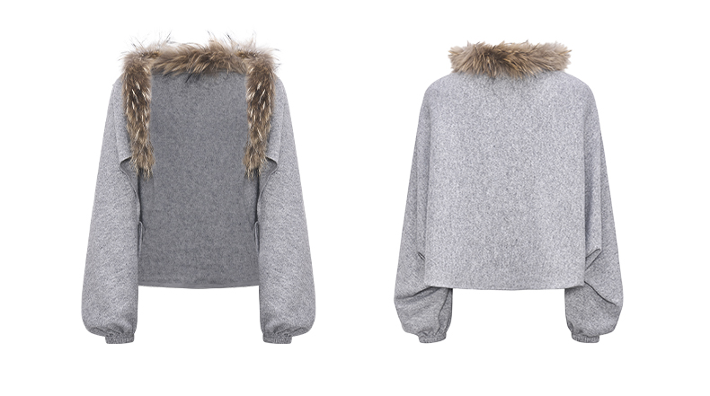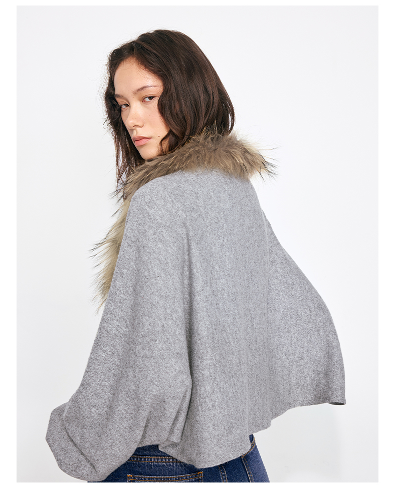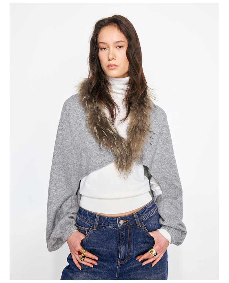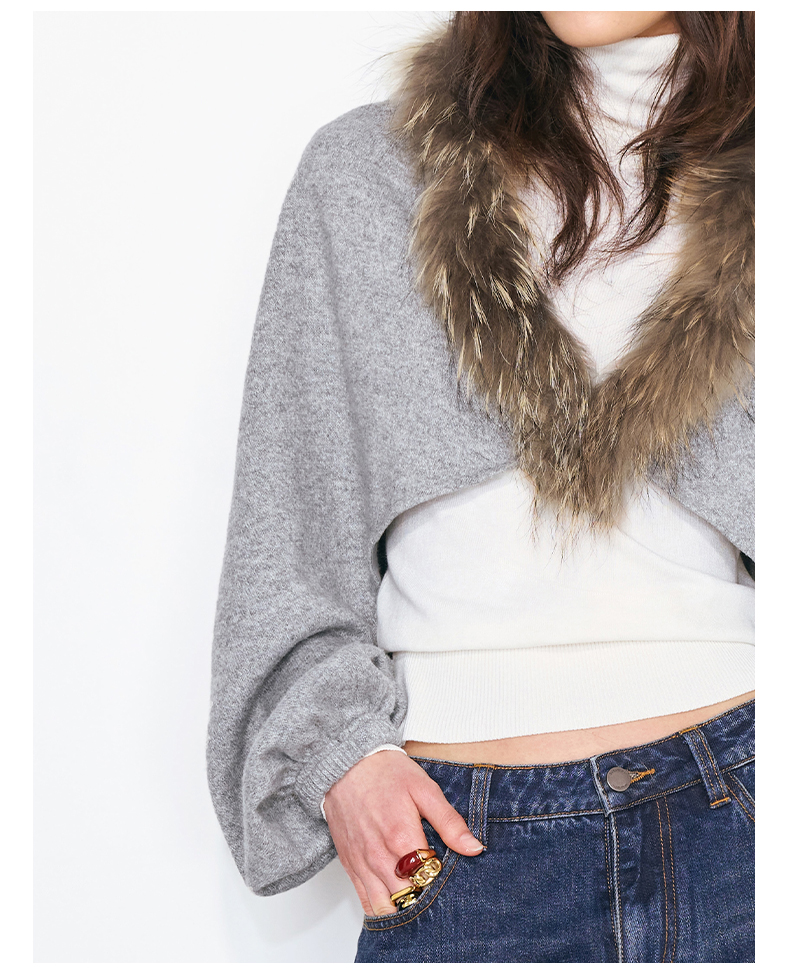 NUTH花灰色可拆卸毛领灯笼袖针织披肩短外套女