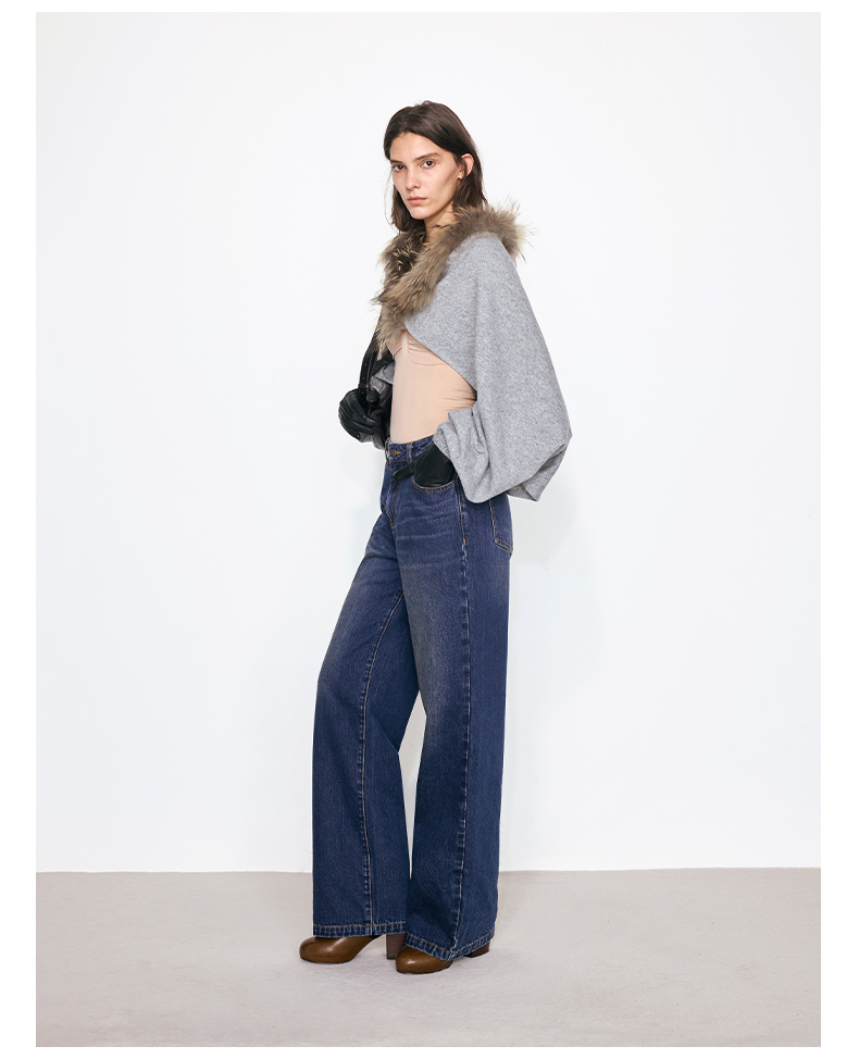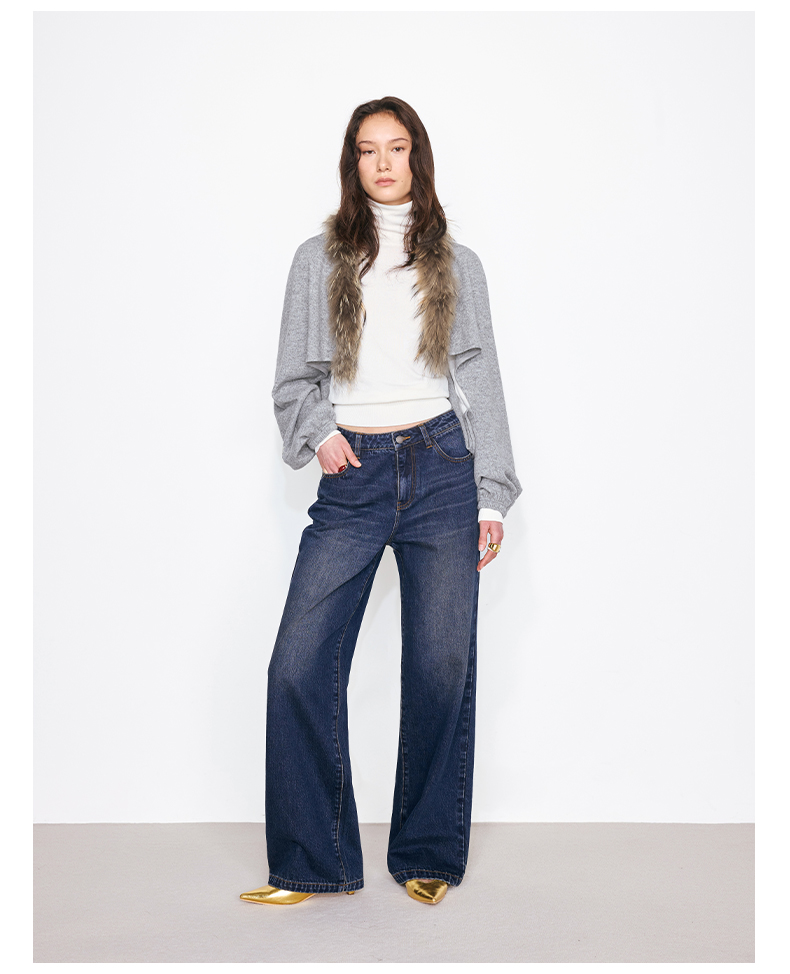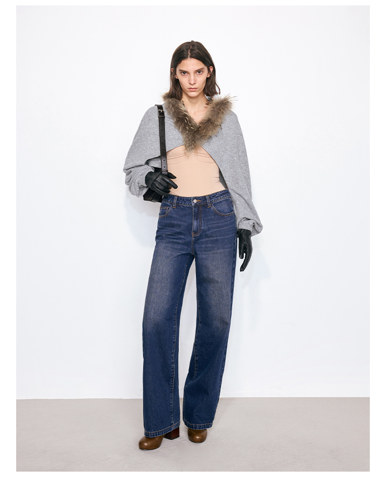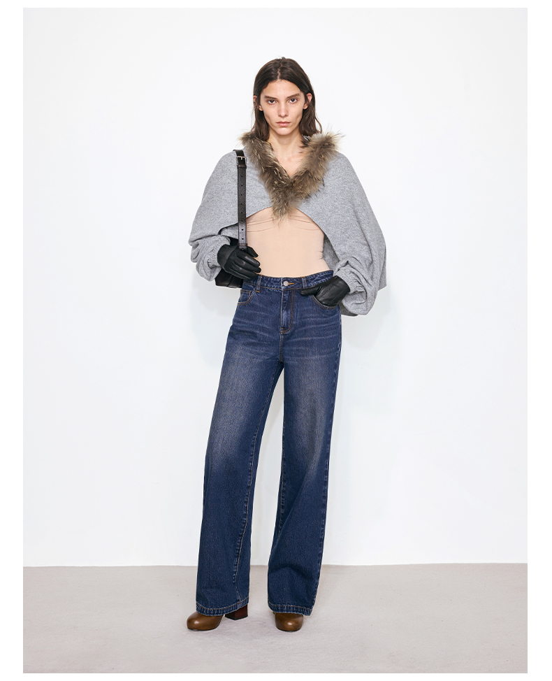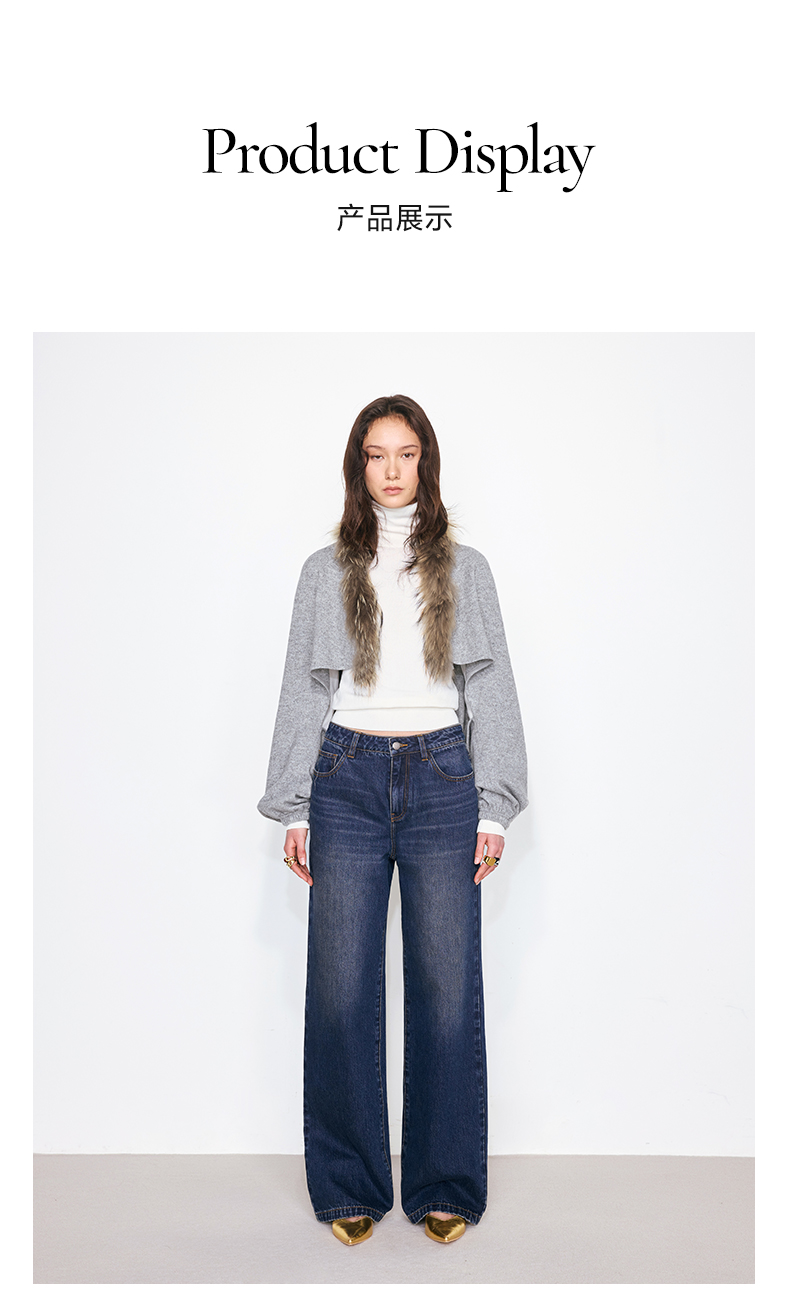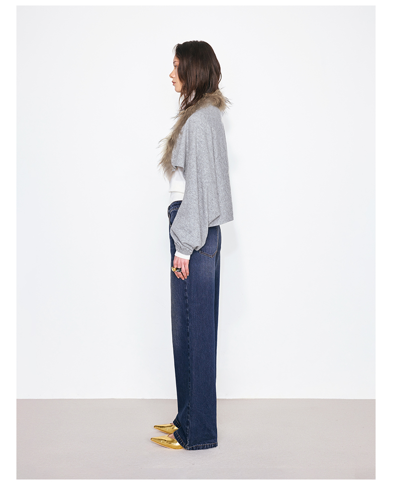 NUTH花灰色可拆卸毛领灯笼袖针织披肩短外套女
