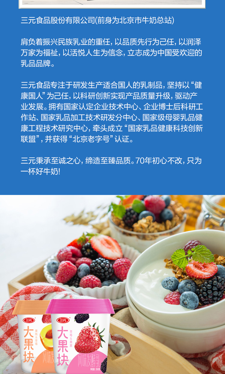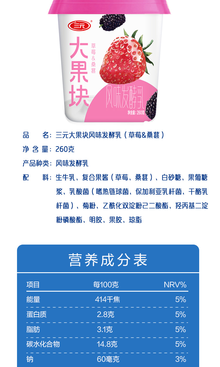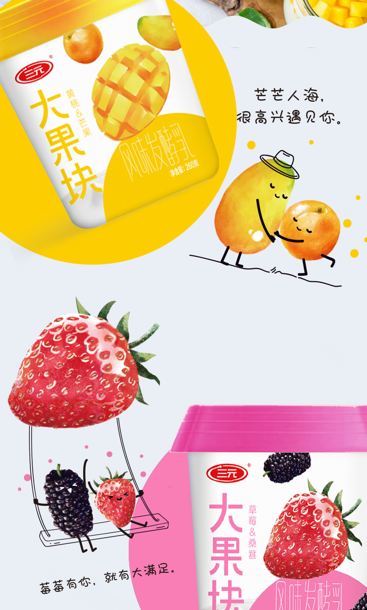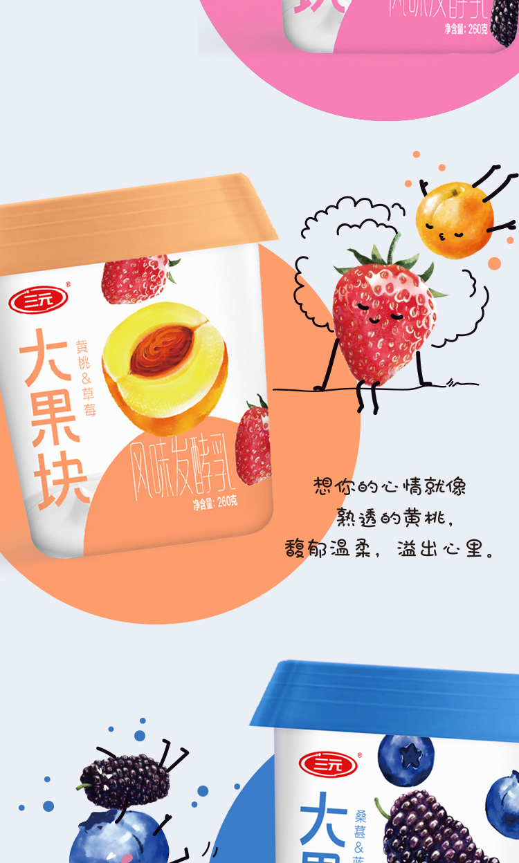 【自提-低温】大果块风味酸牛奶-草莓+黄桃260g*3