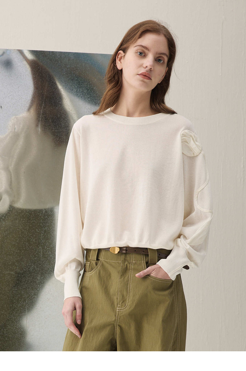 谜底套头针织衫长袖2026春季新品原创立体花时髦毛衣女261MZ0342