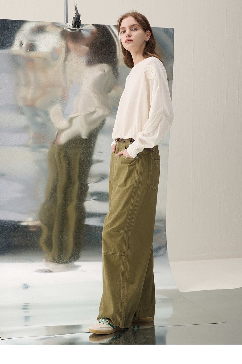 谜底V领T恤短袖2025年冬季新品立体绒花原创小马章仔女254MT1486