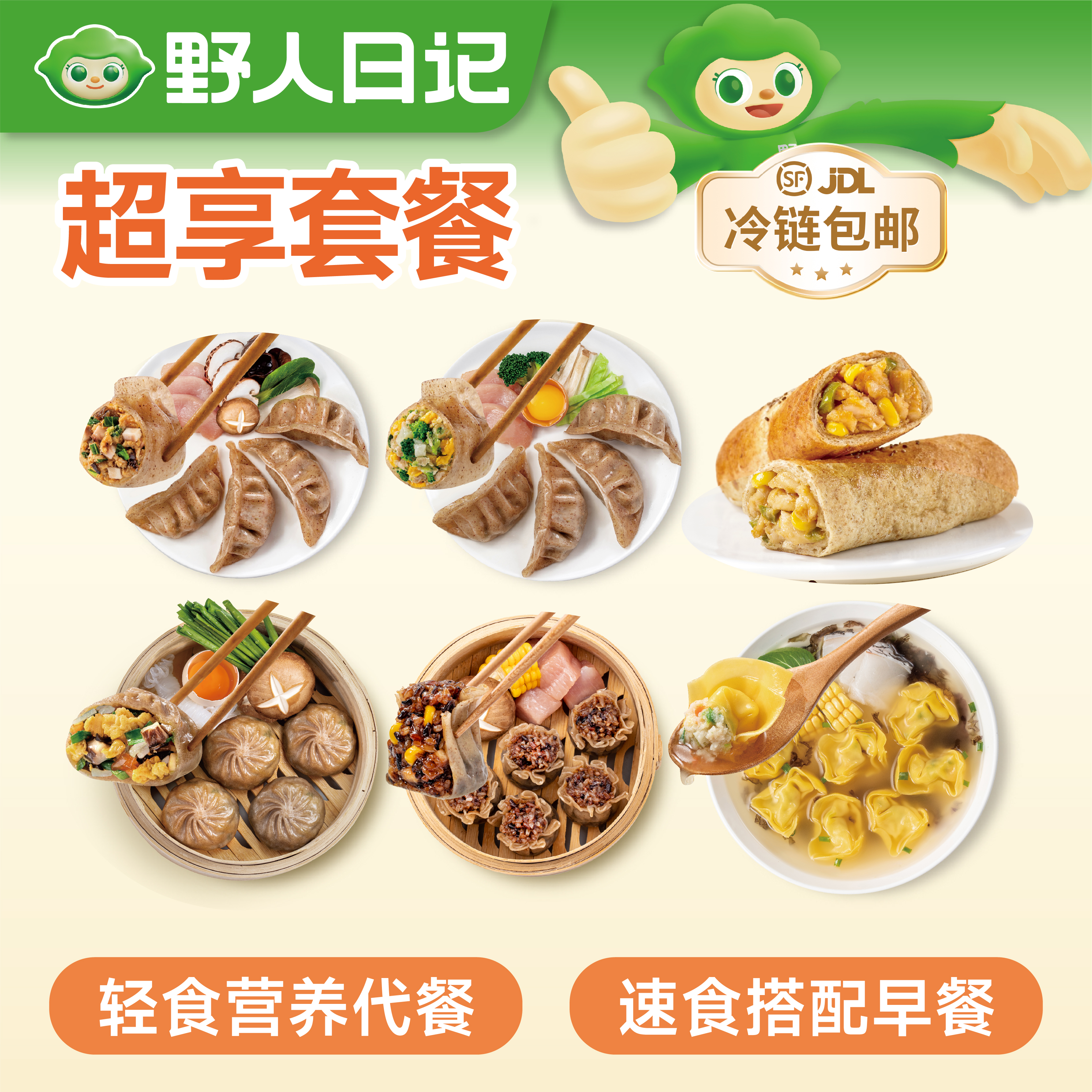 【到手8袋】野人日记 超享套餐 8袋装(魔芋燕麦鸡胸肉蒸饺*1袋+魔芋西兰花蒸饺*1袋+全麦鸡肉卷*2袋+荞麦膳食包*1袋+糙米烧麦*1袋+鳕鱼馄饨*2)袋营养早餐不重样 健康无负担