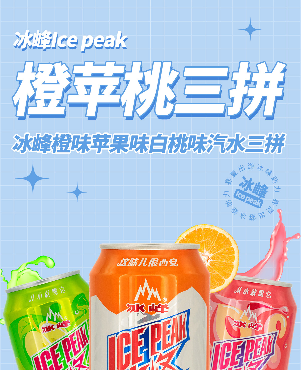 冰峰橙味/白桃味/苹果味(4+4+4)330ml*12罐龙峰橙祥混合装汽水饮料(新老包装随机发货)