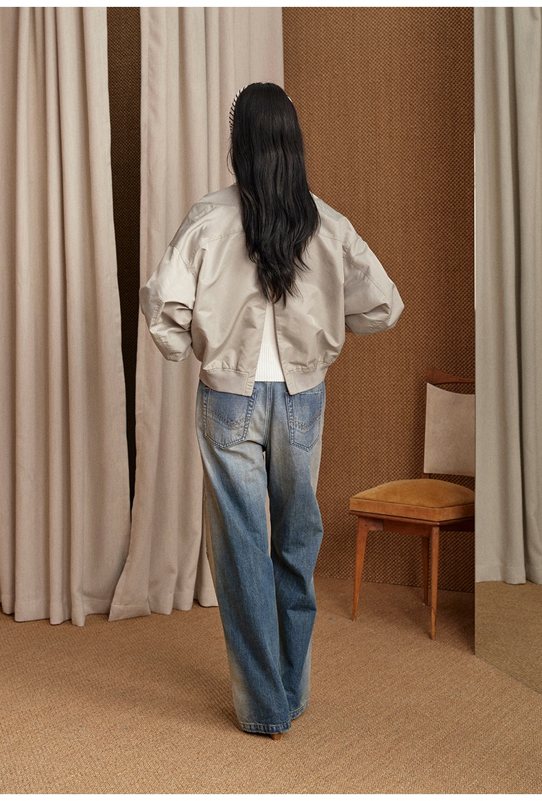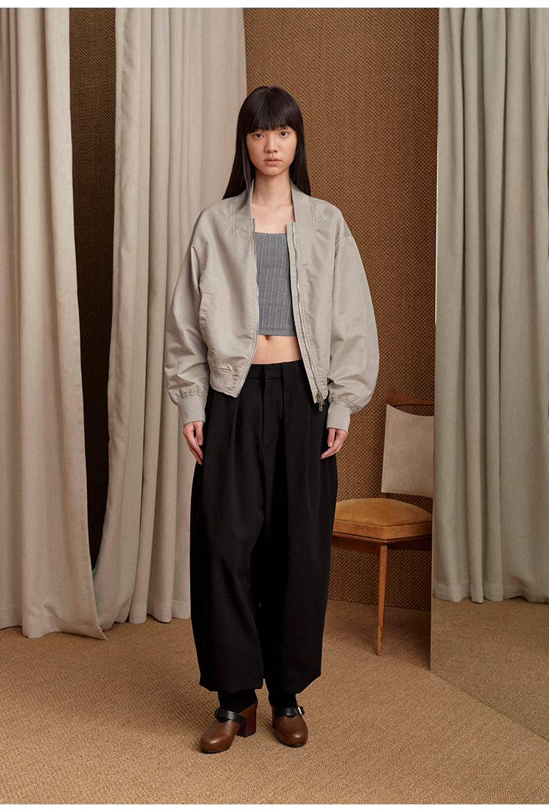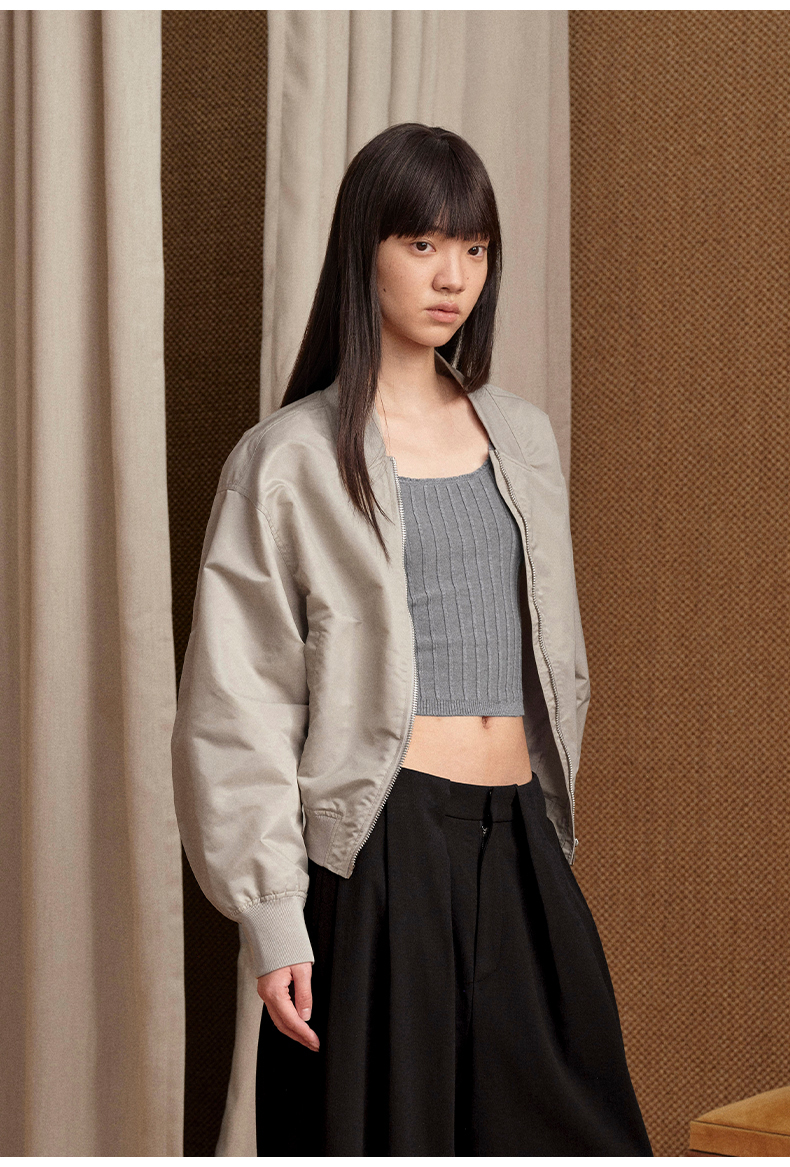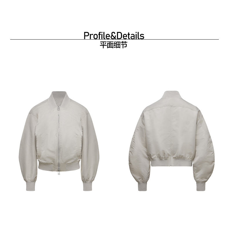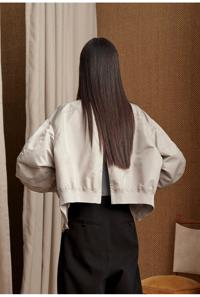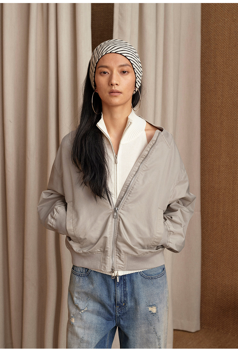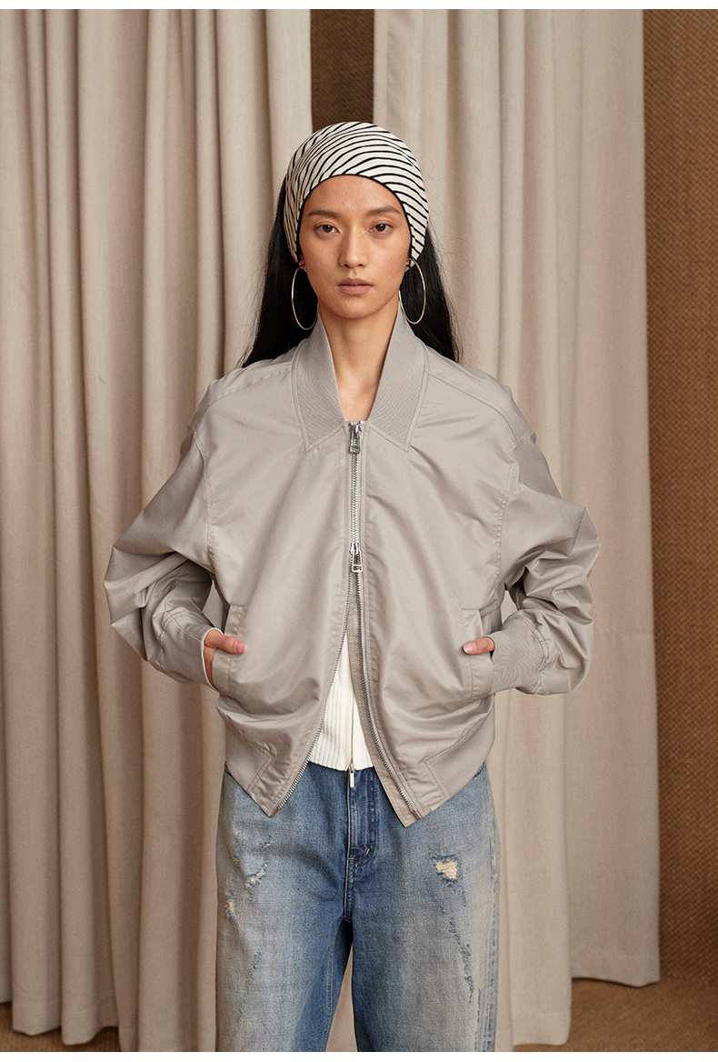NUTH 宽松短款bomber夹克后拉链廓形外套女 浅灰豆绿