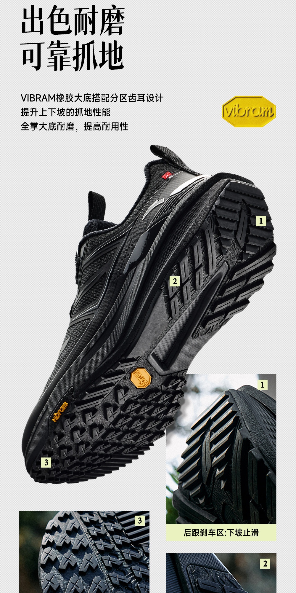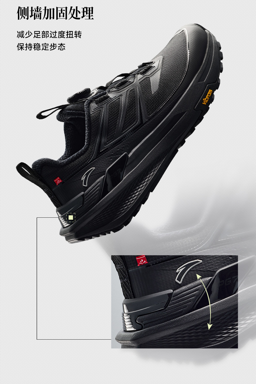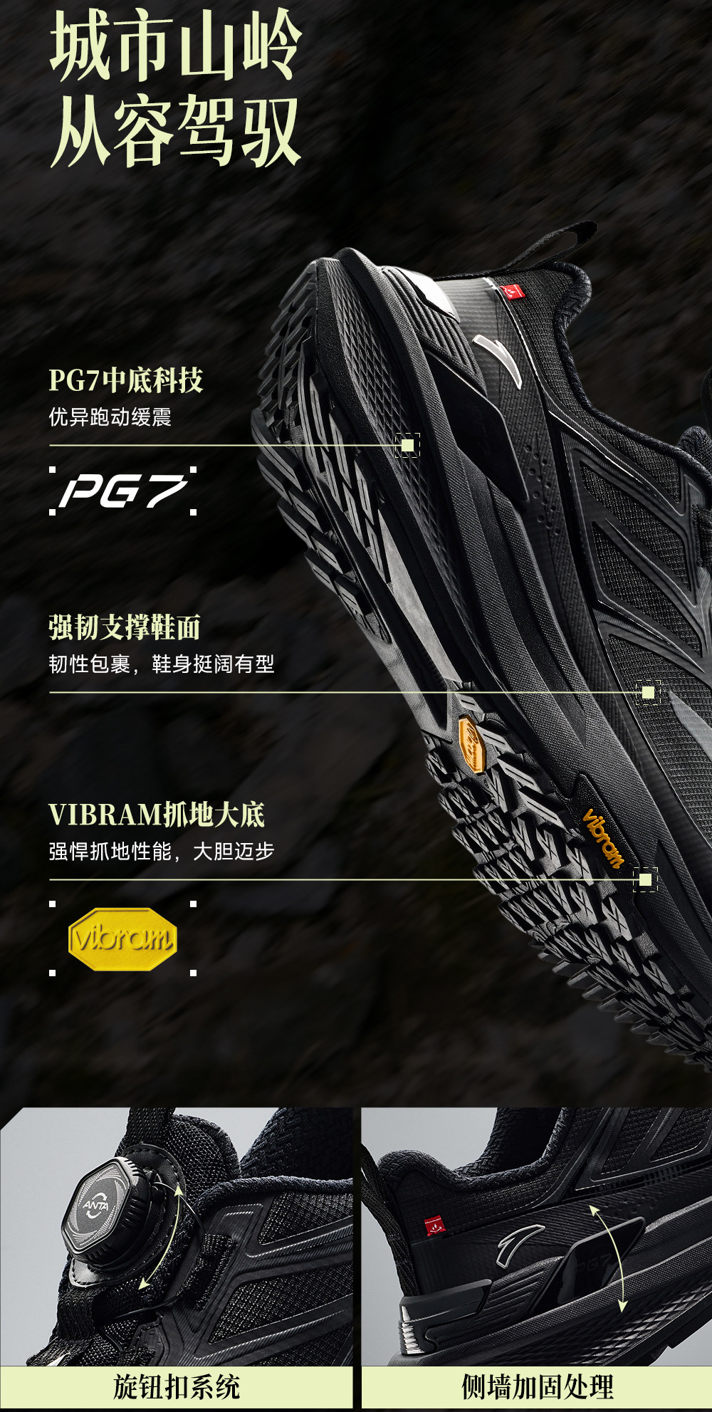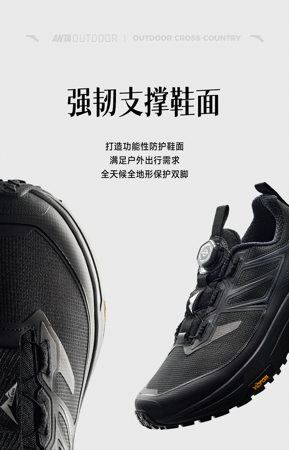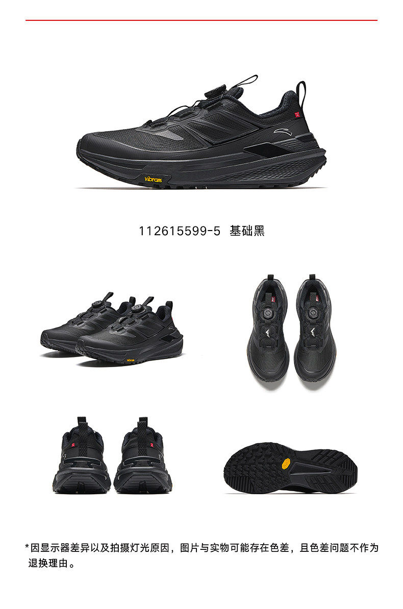 安踏天都VIBRAM大底户外登山运动鞋男正品黑色跑步鞋男112615599