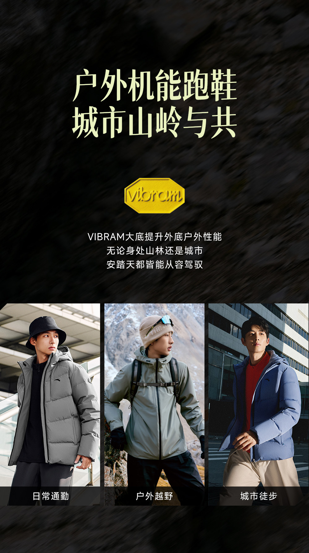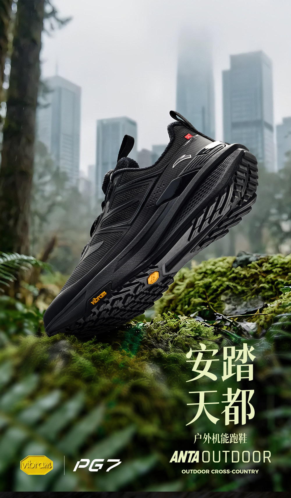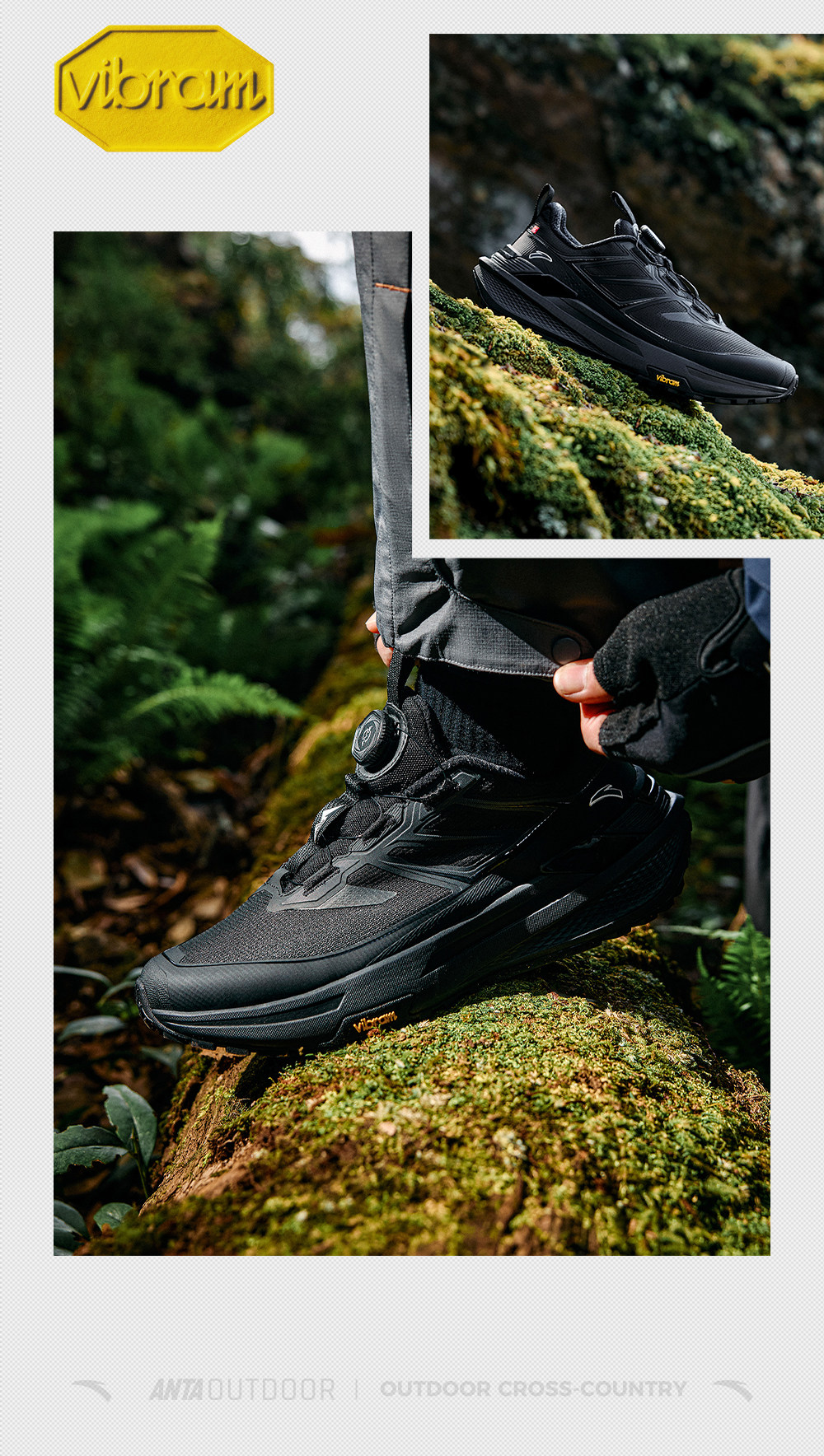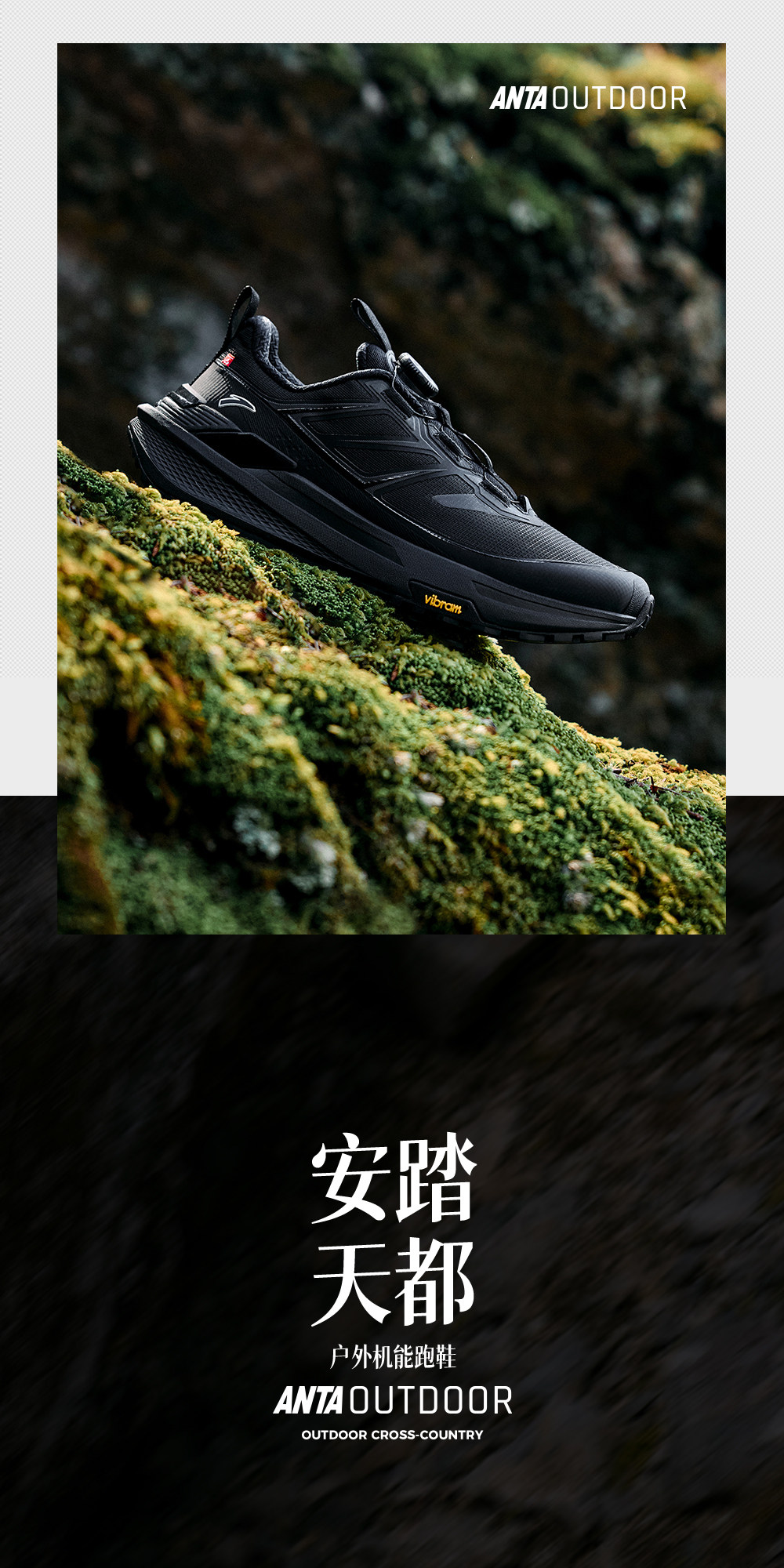 安踏天都VIBRAM大底户外登山运动鞋男正品黑色跑步鞋男112615599