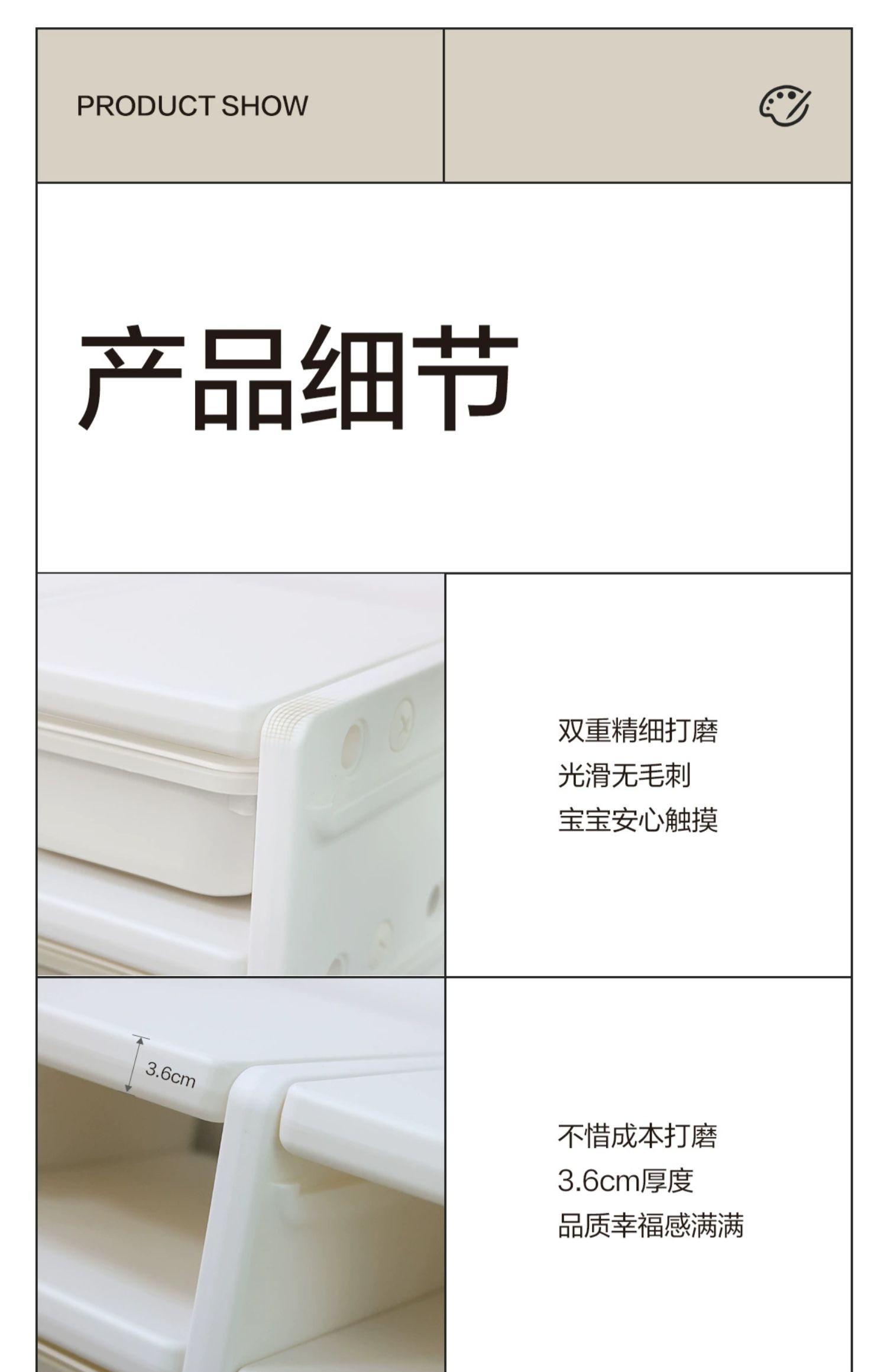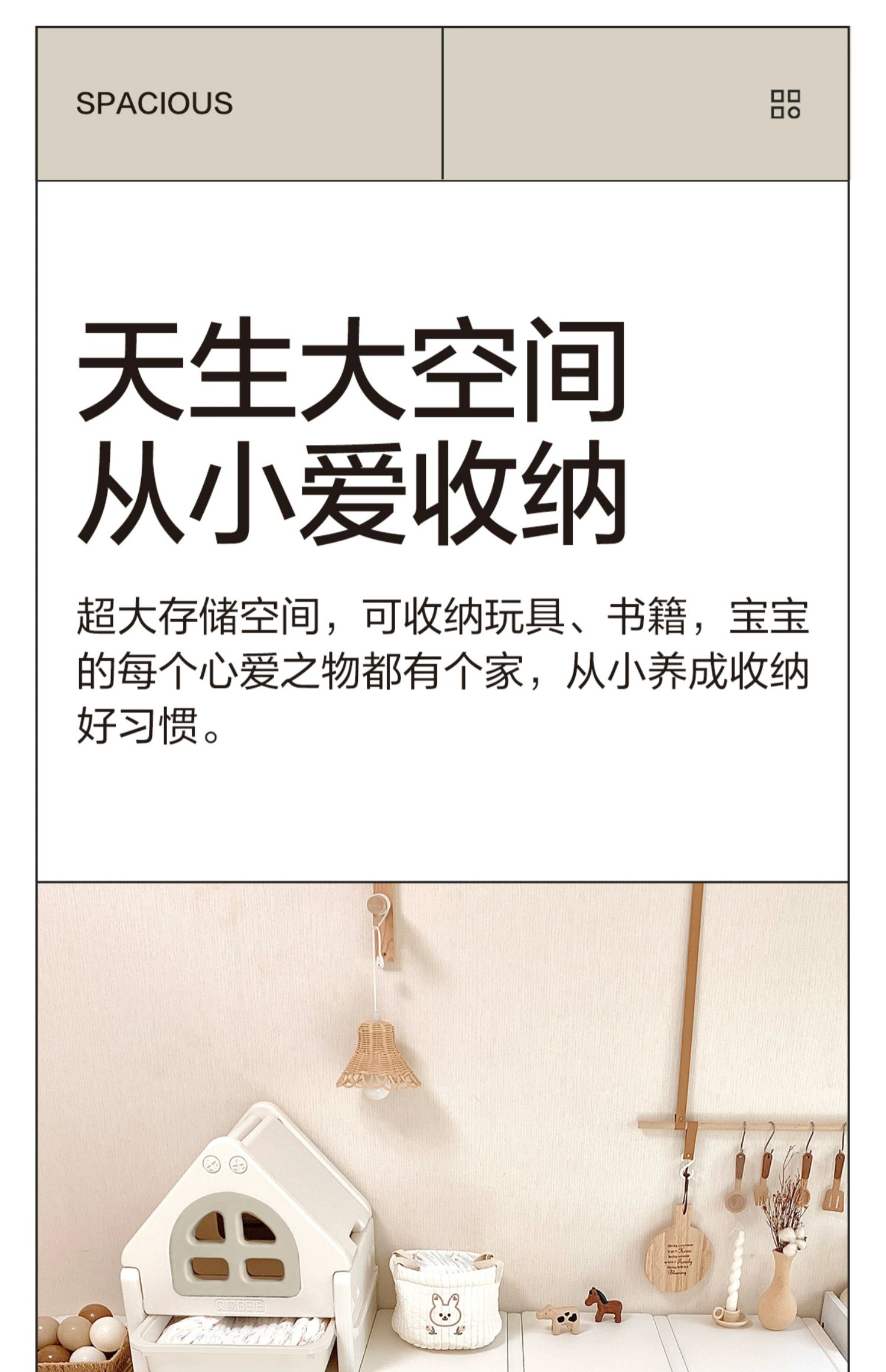 - 「BEIESTATE贝易」以极简设计为风格,主打兼顾设计、品 质和性价比的母婴产品,以创造极致细腻、不张扬、 不世俗的当代母婴用具,为用户日常亲子生活与幼儿 的启蒙早教提供新选择。
