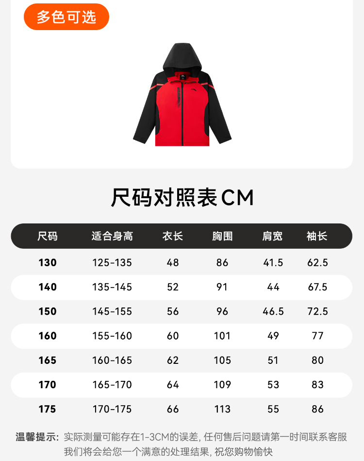 安踏儿童防泼水外套男大童运动上衣2025秋新款运动连帽户外外套352537603N