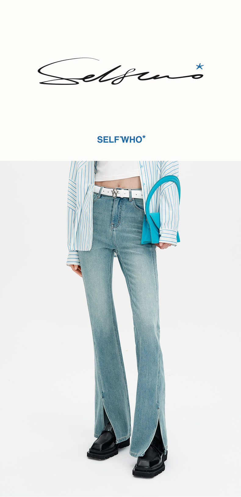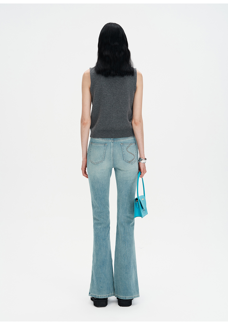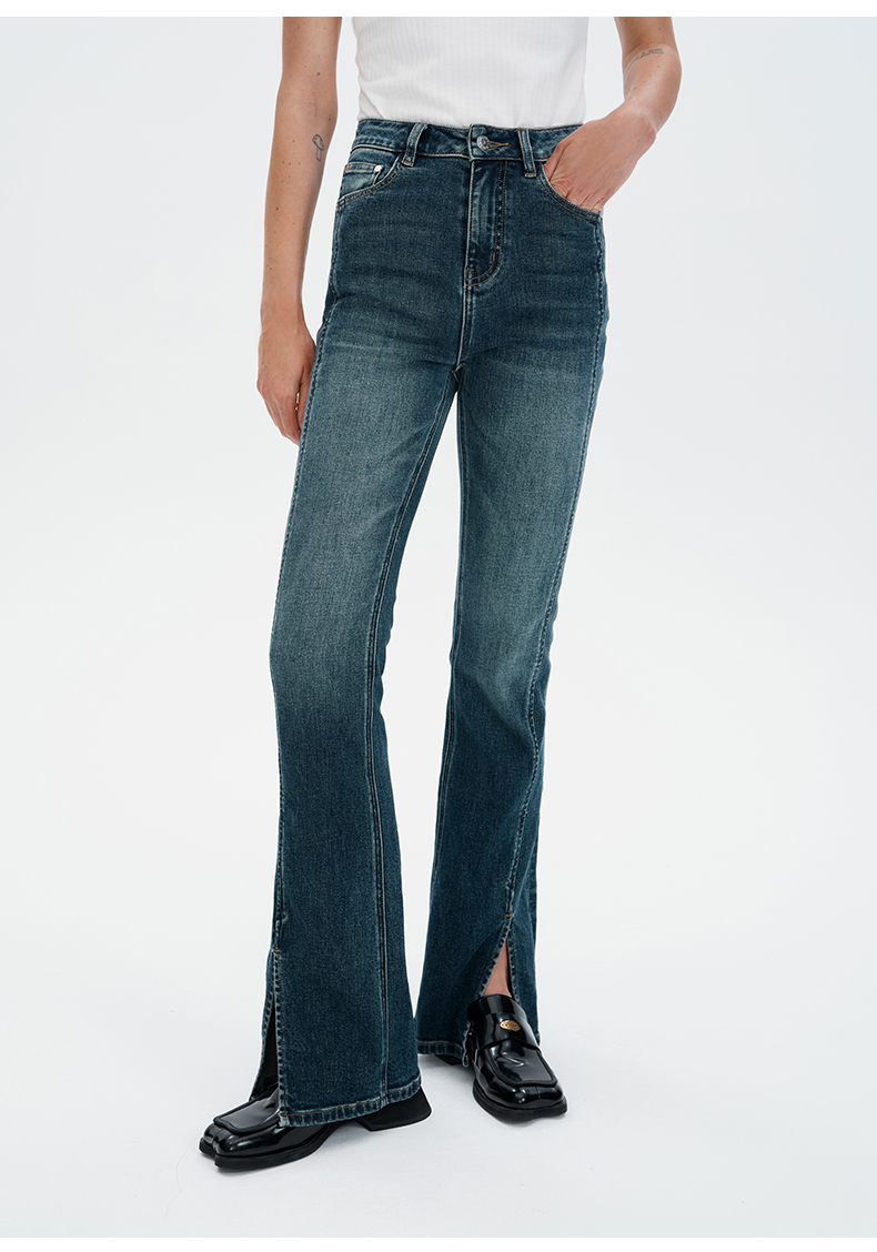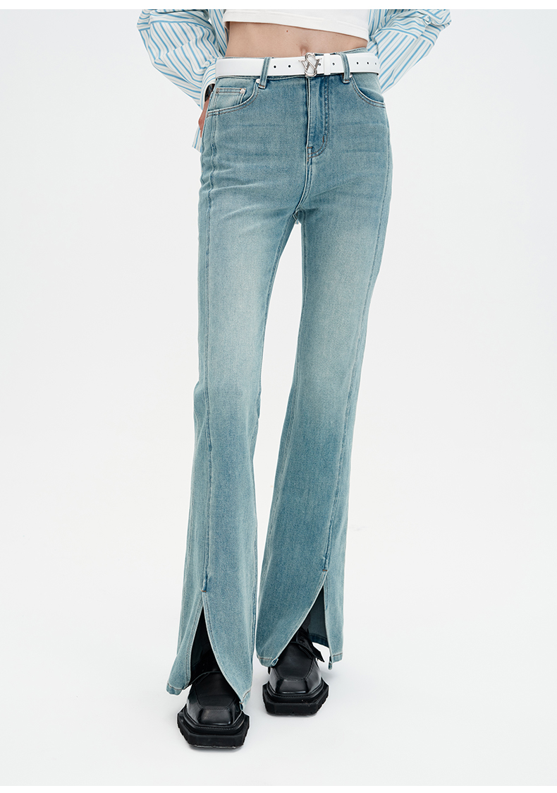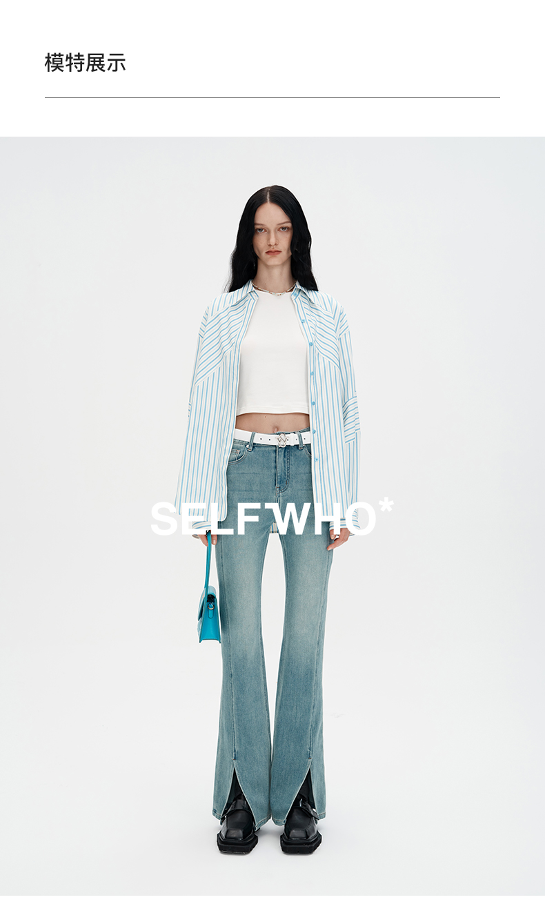 SELFWHO浮影牛仔系列秋季牛仔裤喇叭裤女2024新款弹力开衩微喇裤