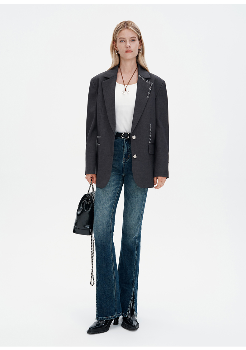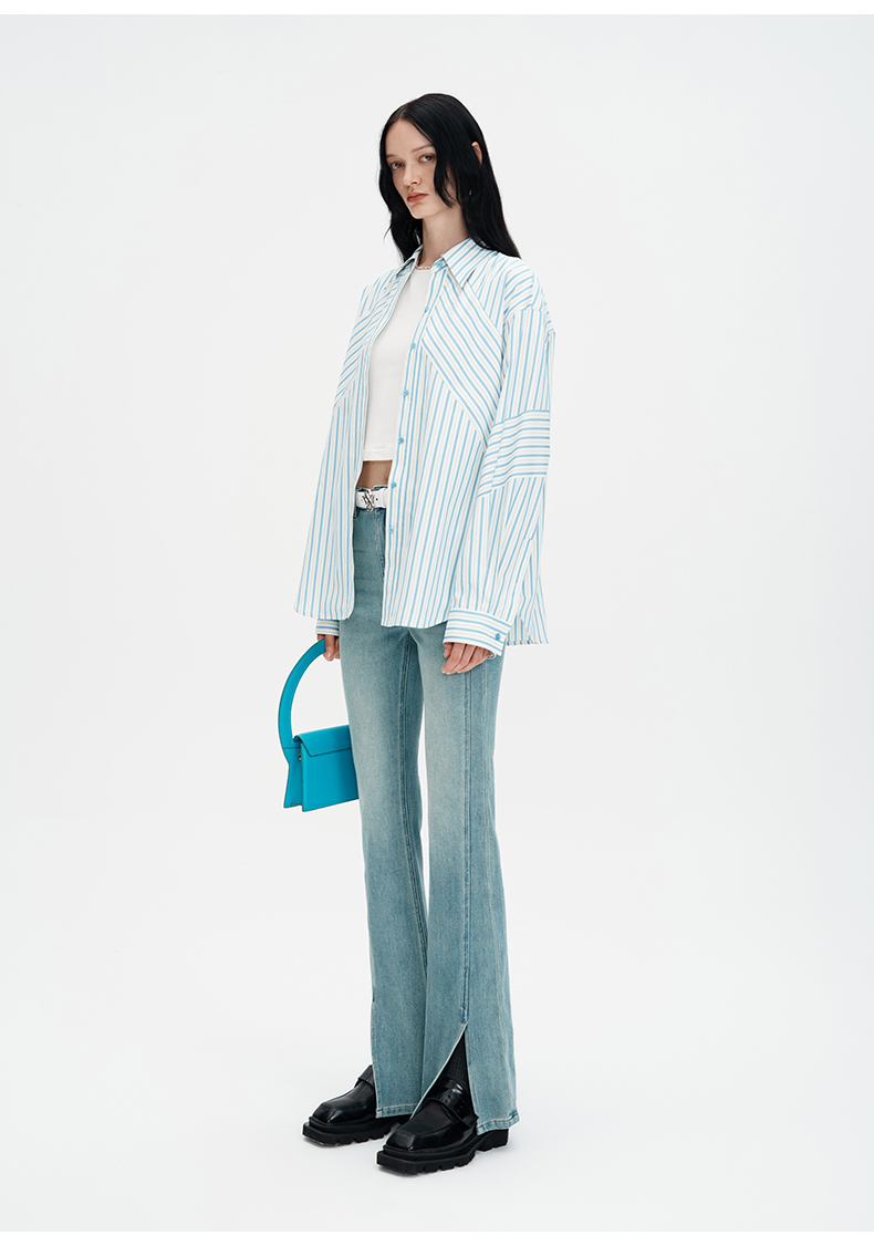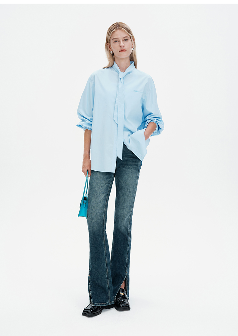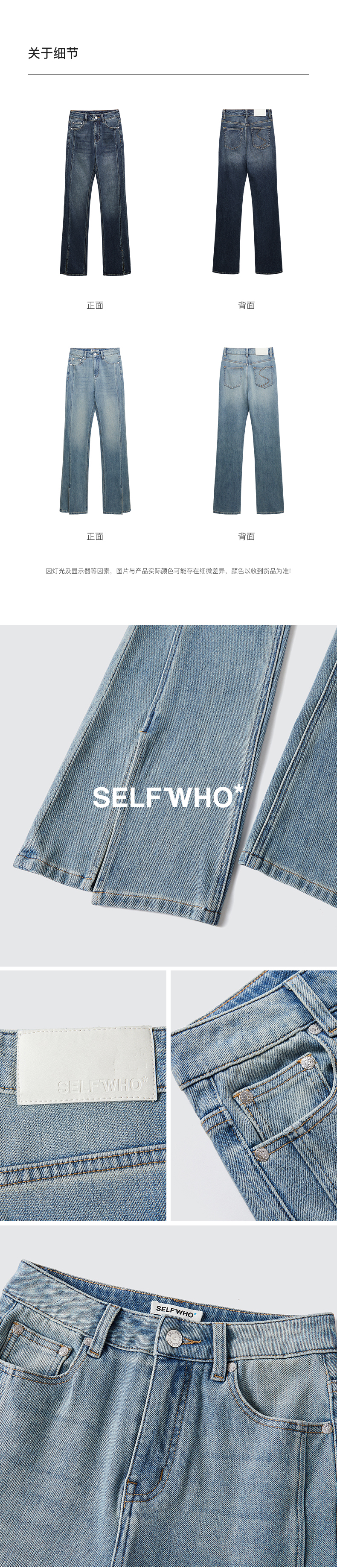 SELFWHO浮影牛仔系列秋季牛仔裤喇叭裤女2024新款弹力开衩微喇裤