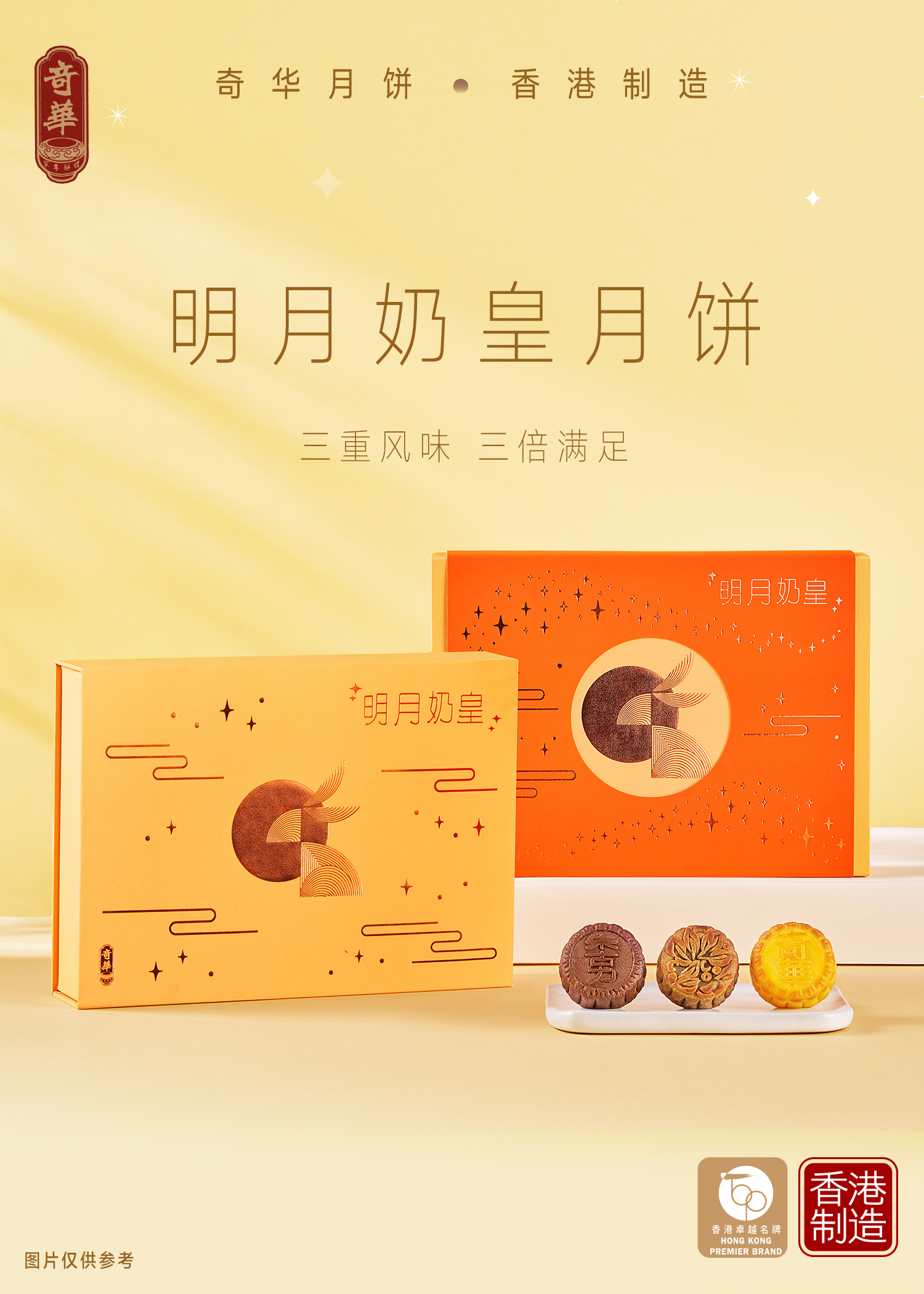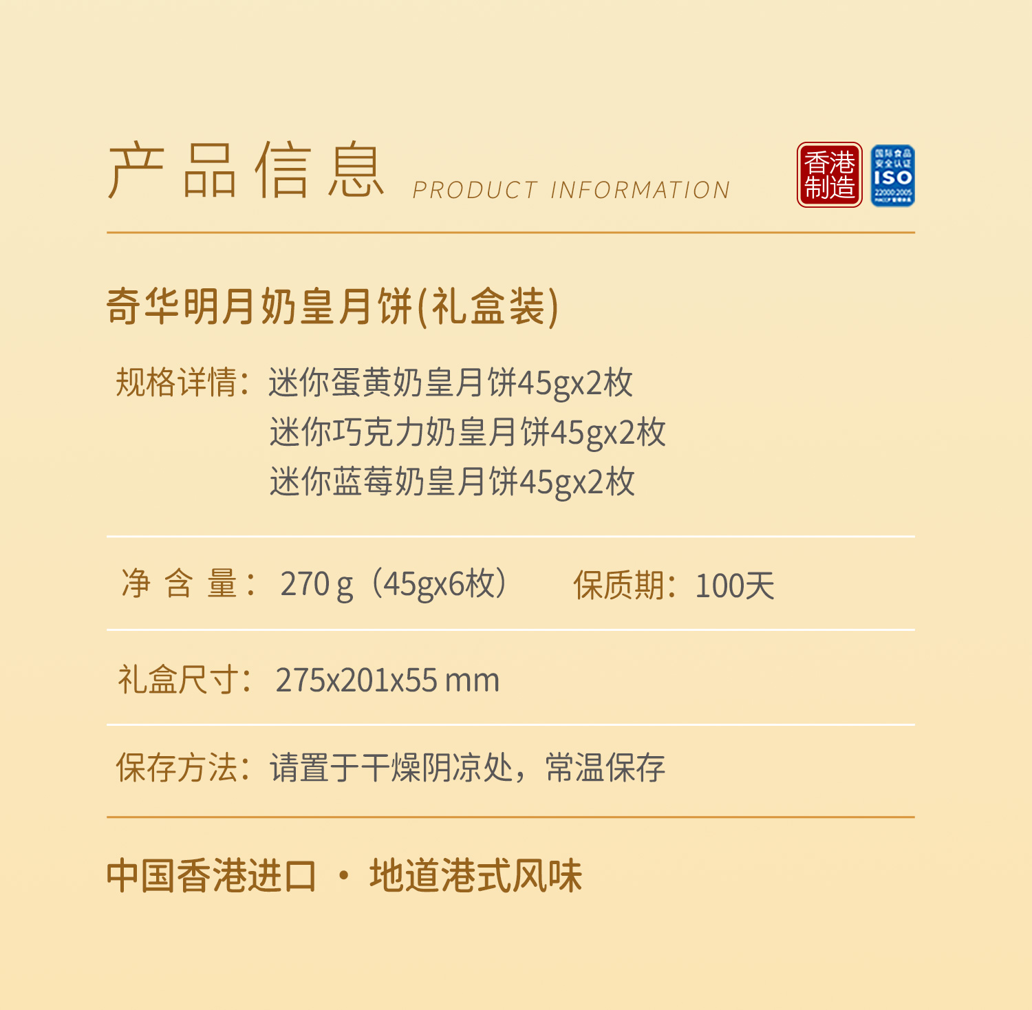 【明月奶皇月饼】一盒三味港式月饼糕点中秋送礼奇华饼家中国香港进口