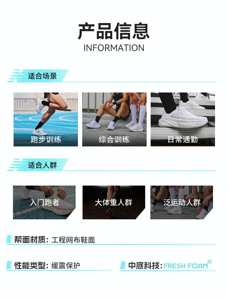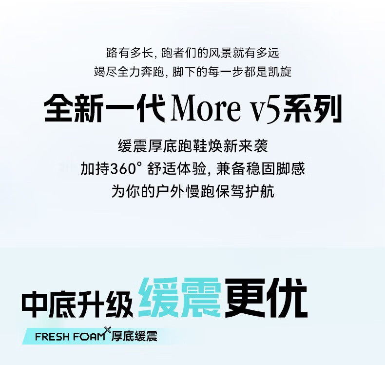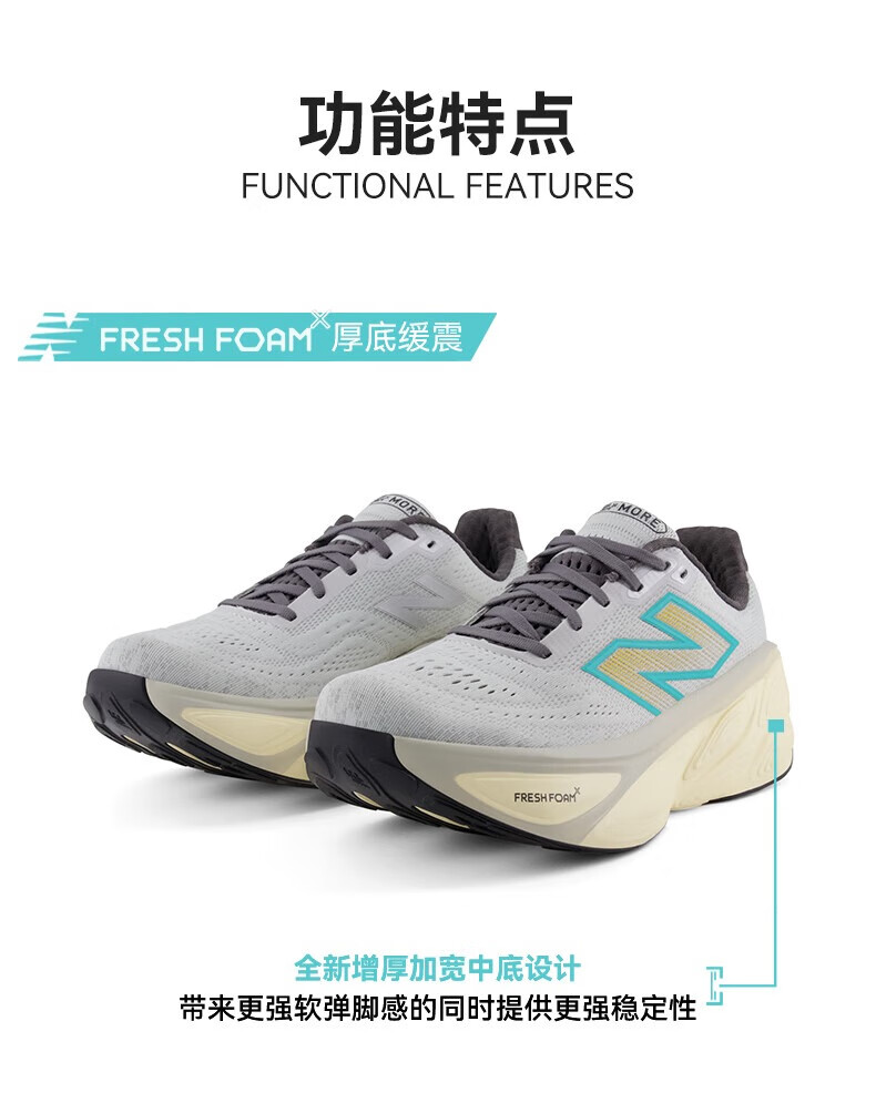 NEW BALANCE/NB Fresh Foam X More V5 男女款透气缓震耐磨柔软运动跑步鞋