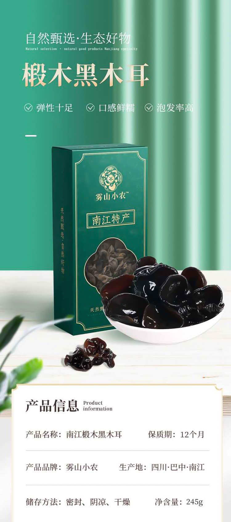 【雾山小农】南江特产椴木黑木耳245g 食用菌木耳