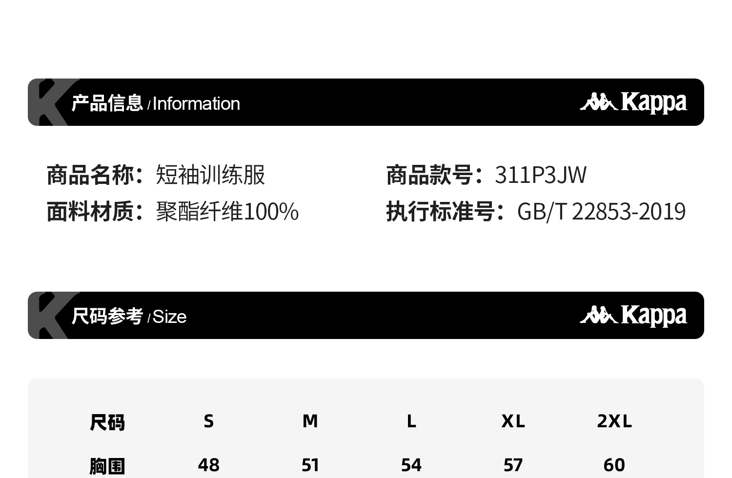 Kappa 运动球服比赛服t恤男士夏季新款轻量透气短袖上衣311P3JW-A0F