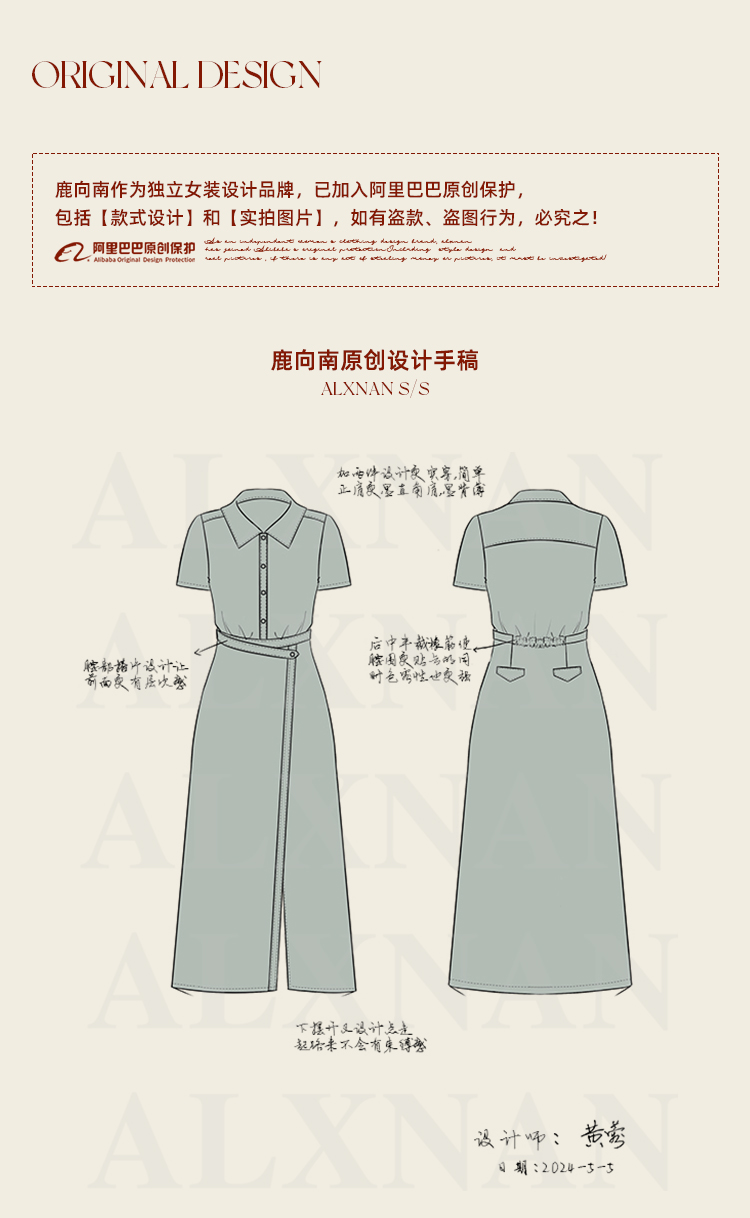 鹿向南「月下湖畔」短袖连衣裙新款女夏季法式气质显瘦长裙