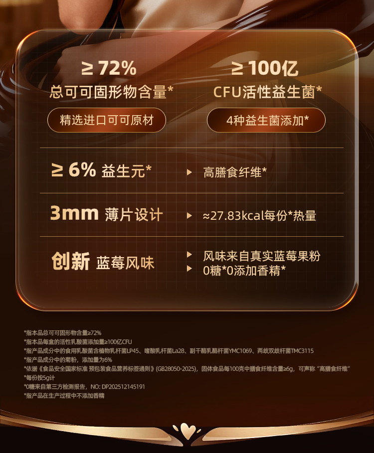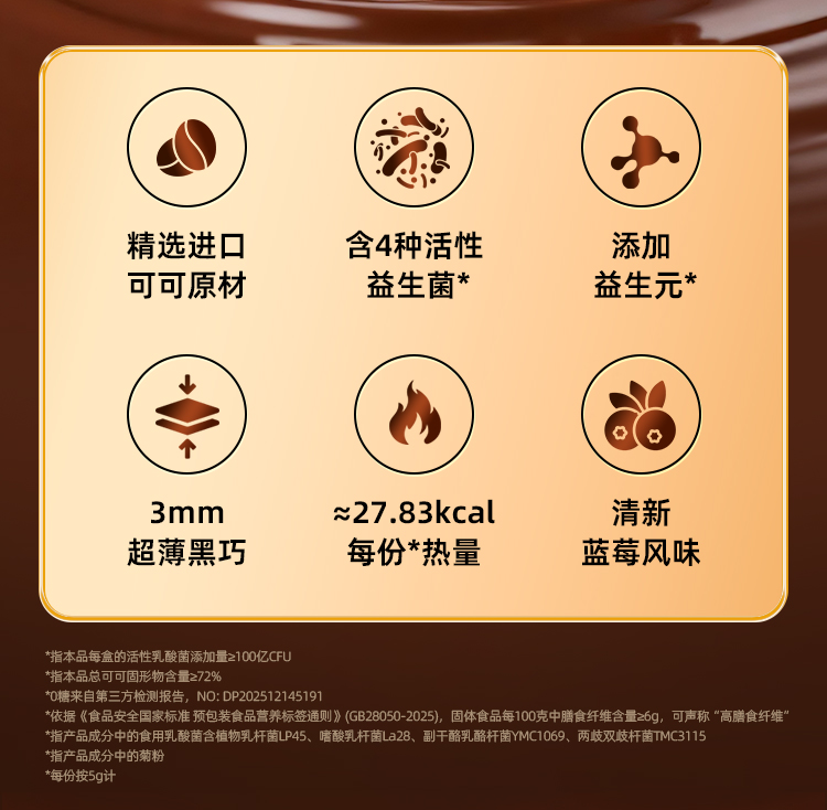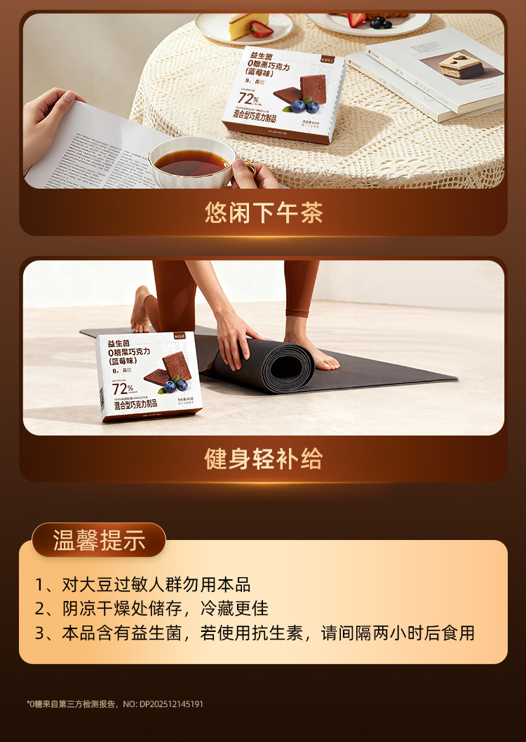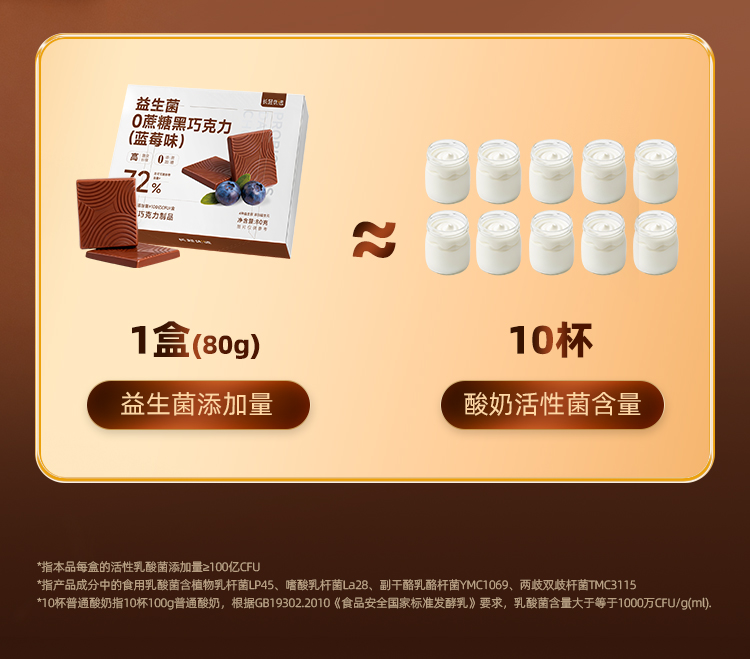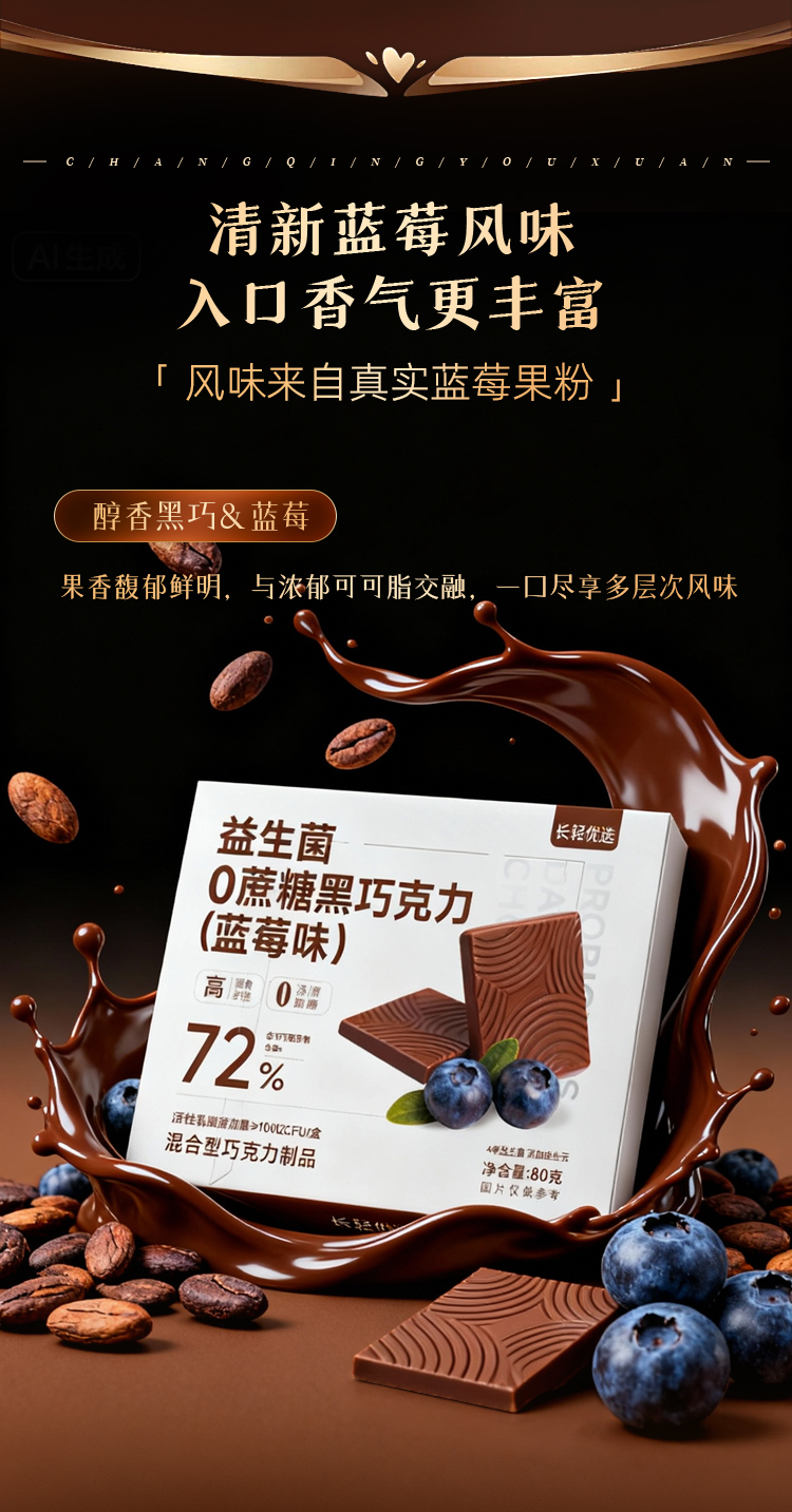 【1216早市直播】【新品】长轻优选 益生菌0糖黑巧克力蓝莓味 80g/盒 入口浓郁黑巧香