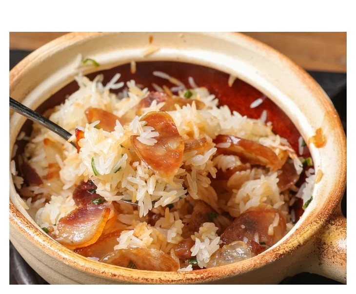 腊肠经典的搭配,应该是老广人钟爱的腊味煲仔饭了,一定要配上广式腊肠,才有灵魂。