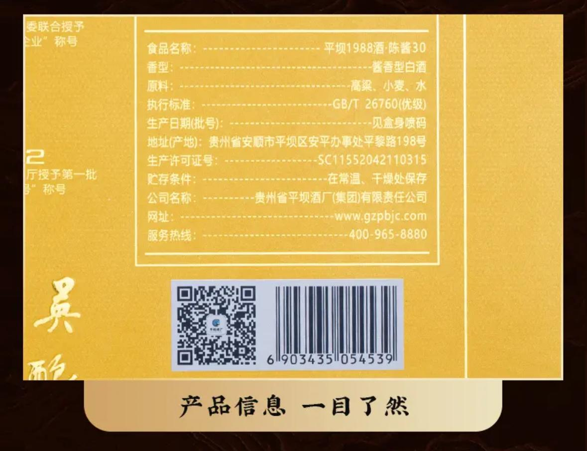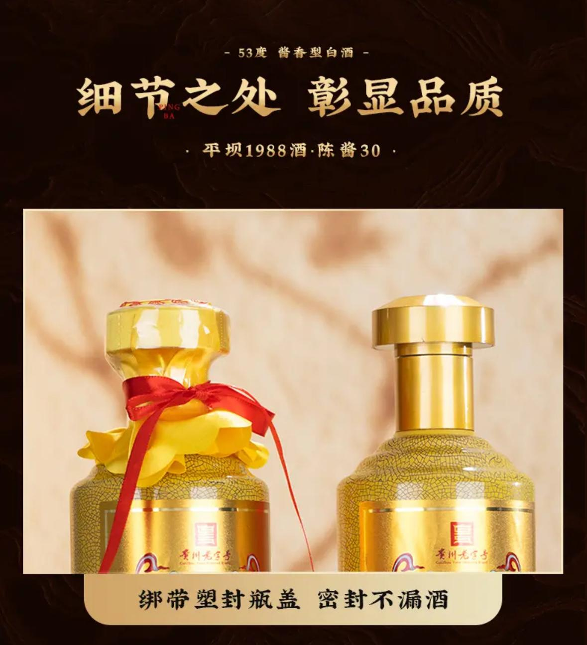 【礼赠佳品】2024年 平坝1988 陈酱30 酱香型白酒 53度 450ml*2瓶礼盒 450ml*2*3整箱