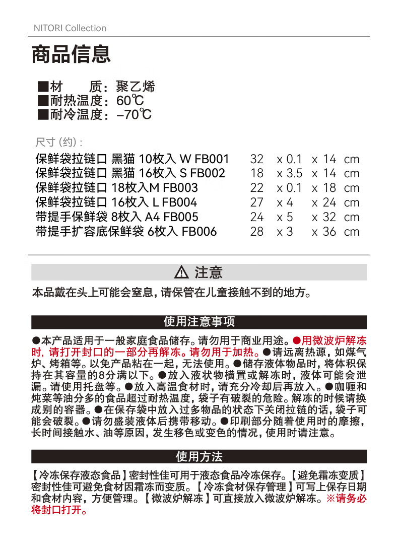 NITORI宜得利家居 保鲜袋拉链式食品收纳袋冰箱蔬果蔬菜收纳分装袋
