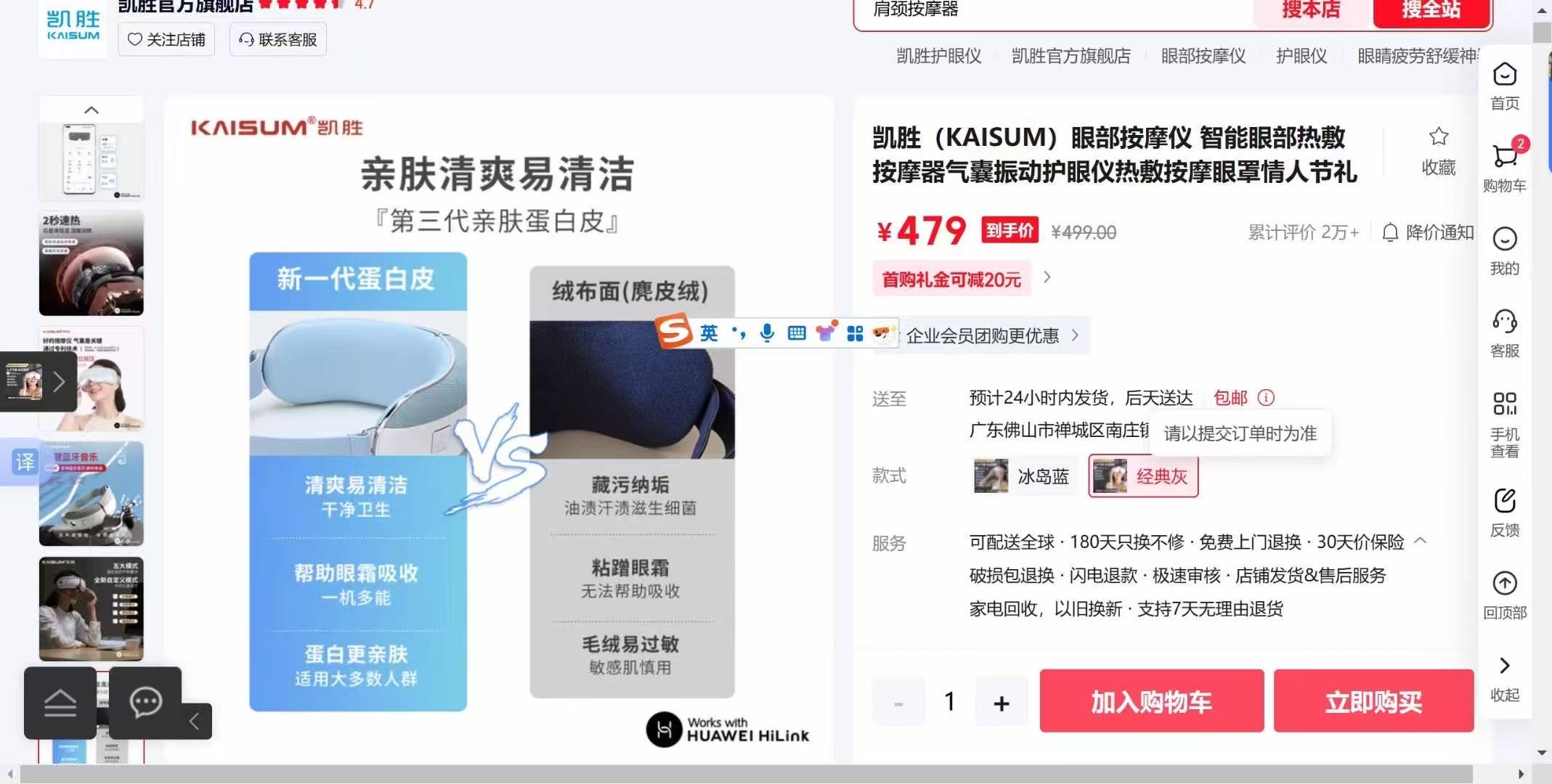 KALSUM 凯胜眼部按摩器 热敷震动按摩器
